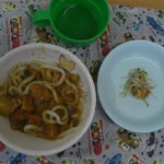 子どもたちの大好きなカレーうどん、笑顔で食べる子どもたちでした♡
