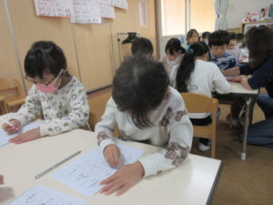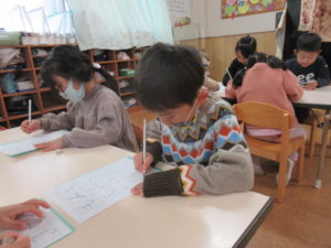 前より字が上手になっているねと褒めて頂き嬉しそうな子どもたちでした♡