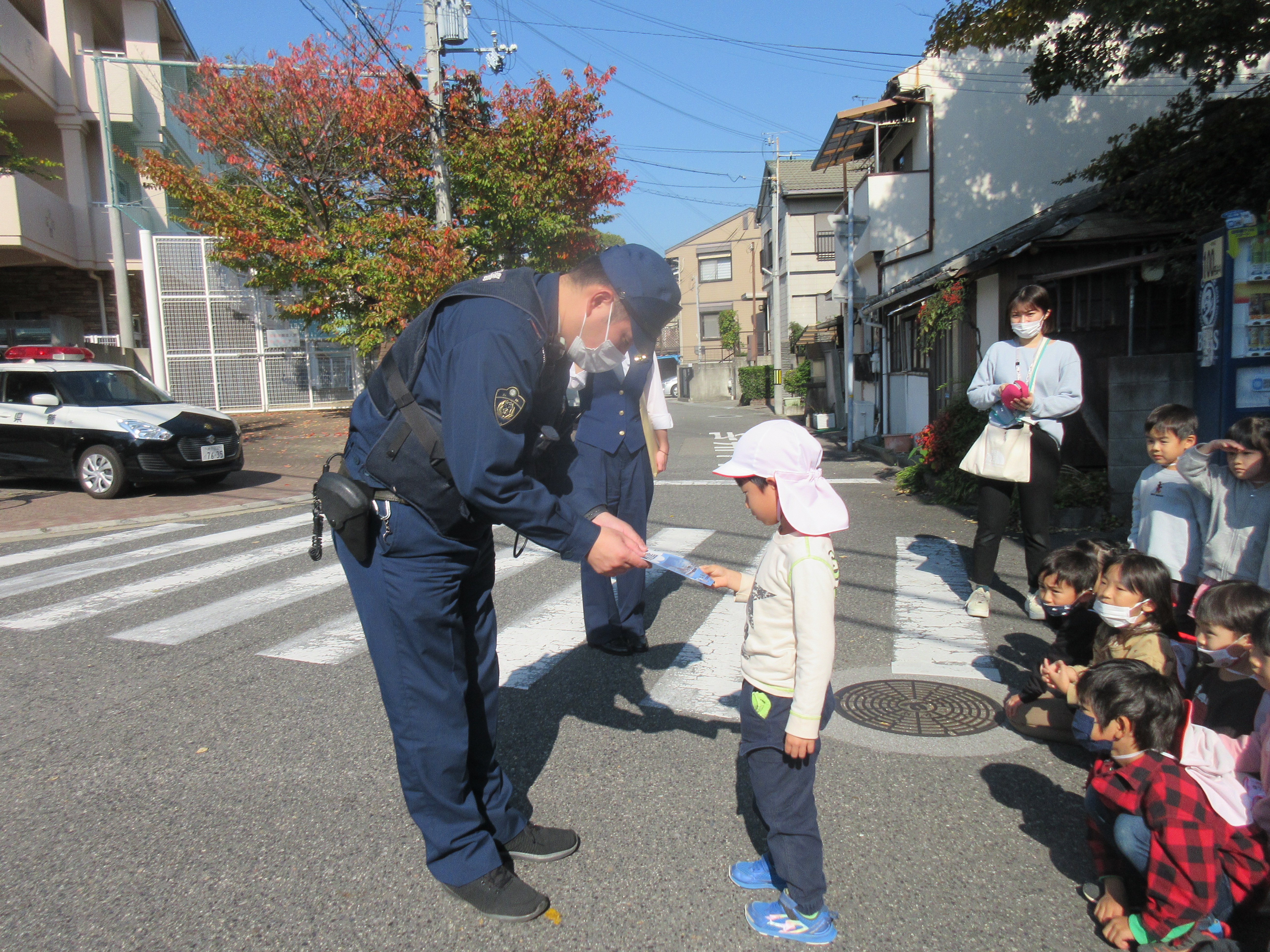 そしてゆり組は果物と野菜をもって、いつもお世話になっている丸山交番に歩いて持っていきました!
