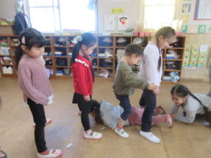 今日はひよこ組さんと一緒に朝のお集まりをしました。ひよこ組さんの手を取って、「こっちだよ!」と教えてあげる姿はもうすっかりお兄さん、お姉さんでした😊最後はたんぽぽトンネルでお見送りをしました♪