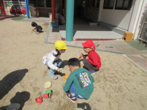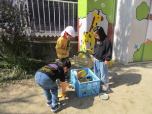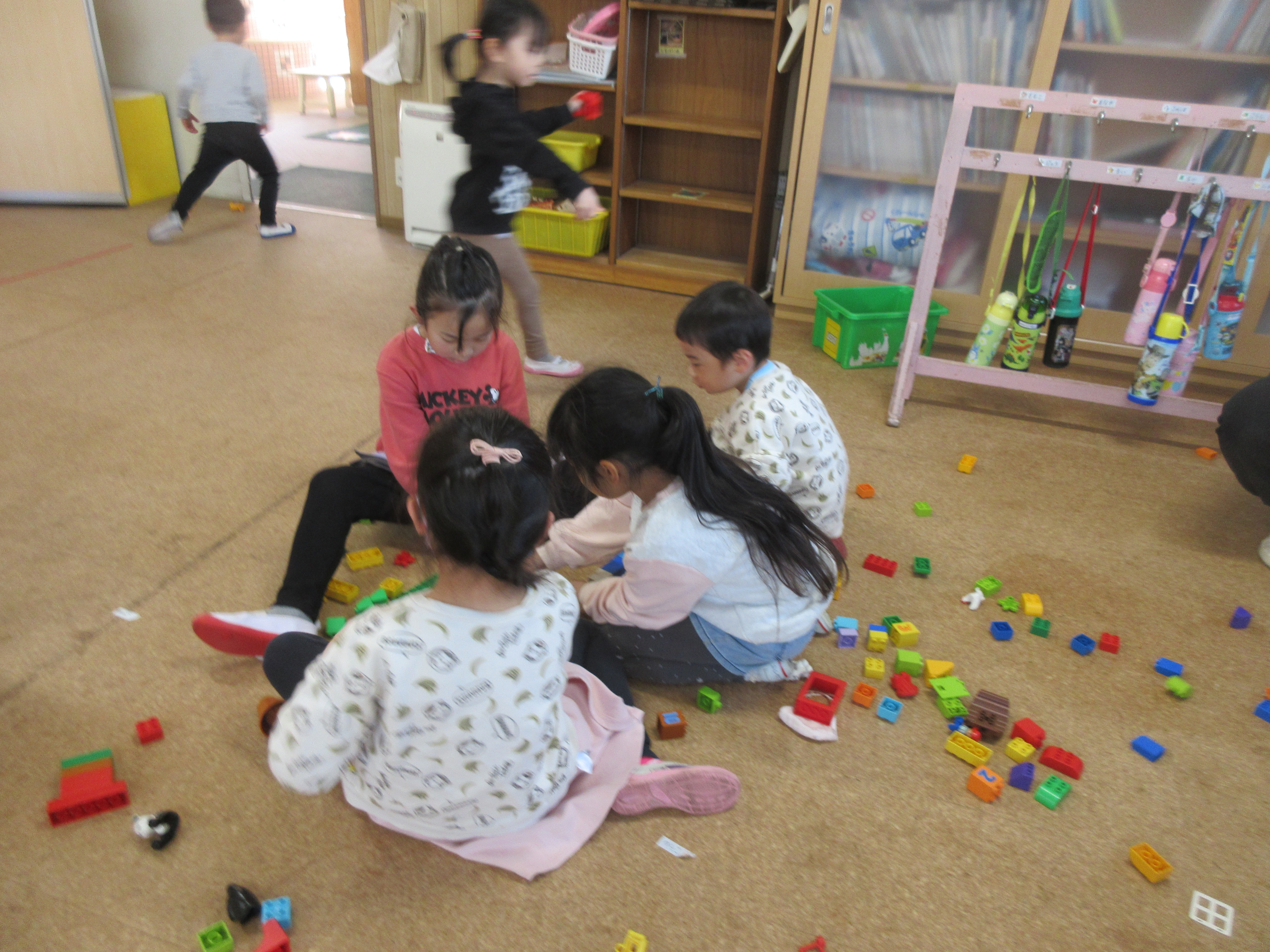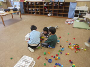 お片付けの時間には、「えー!もうお片付け?」とまだまだ遊びたい元気いっぱいの子どもたちでした♪