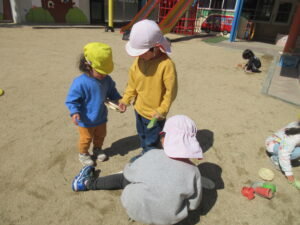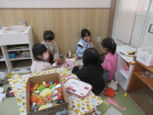 ゆり組さんもお預かりの子どもたちは3月までは登園し、一緒に過ごします☻