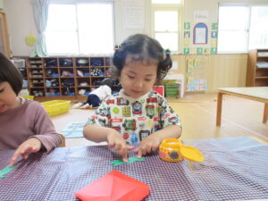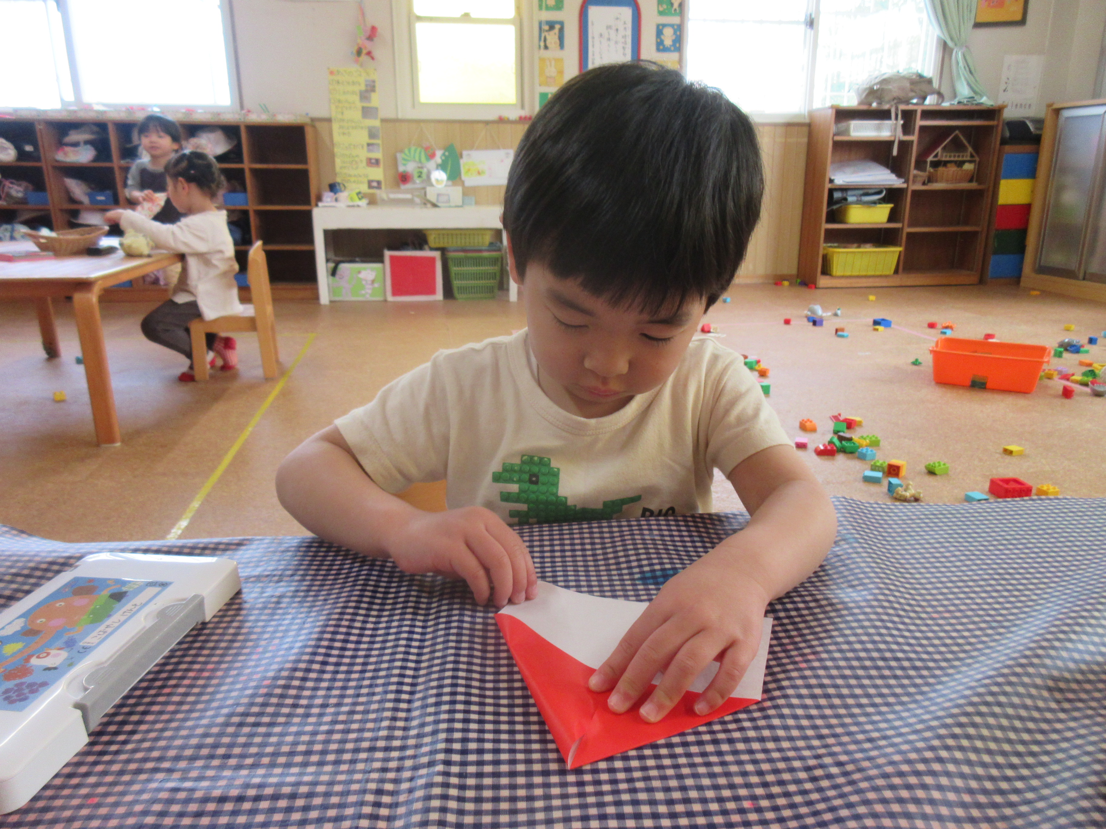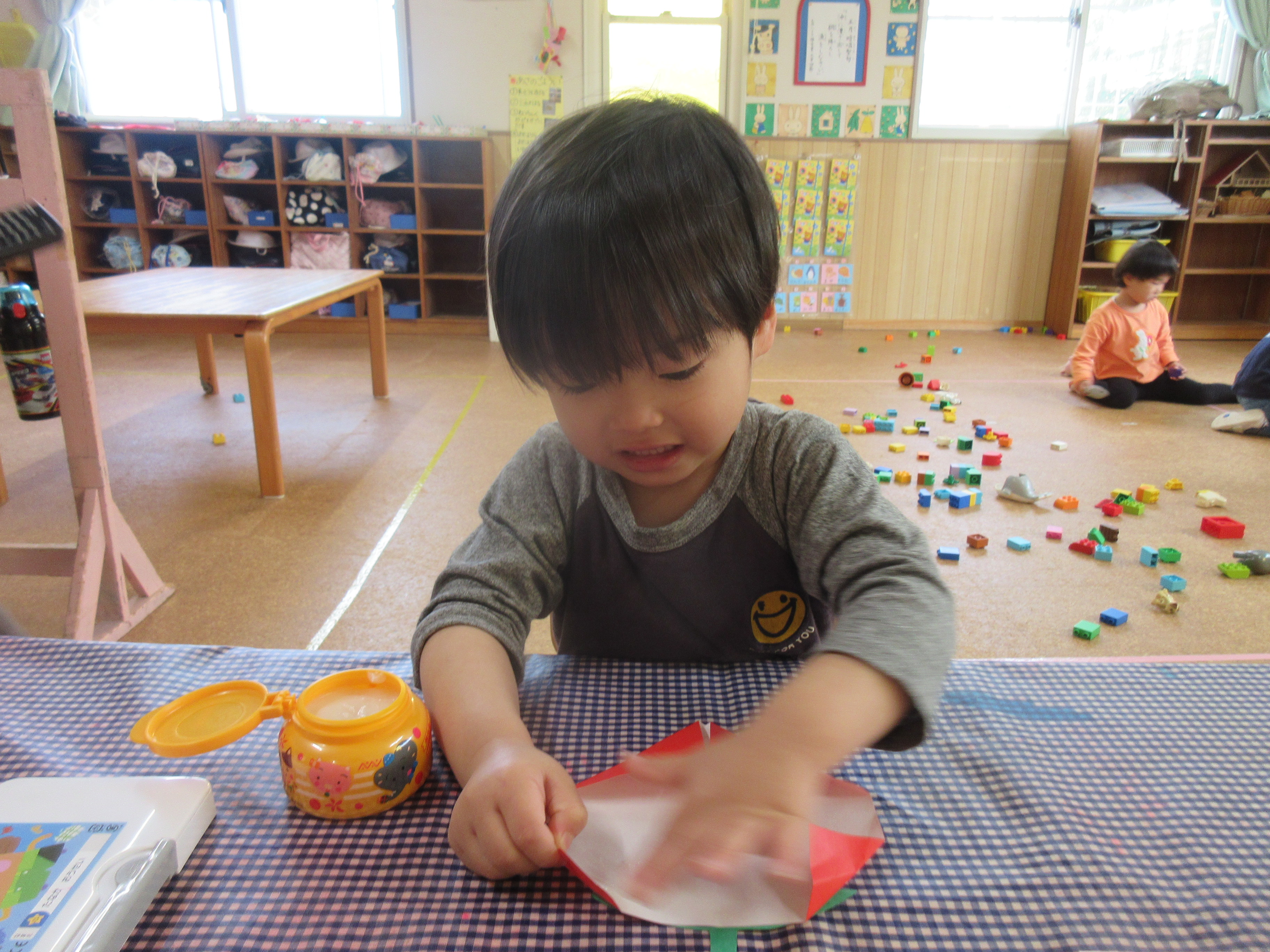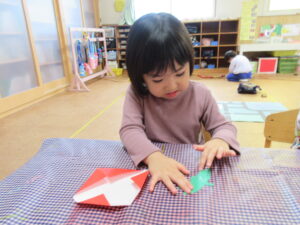 糊の分量や折り紙の約束事などもみんなで確認しながら進めました♪