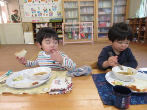 連休明けから量も少し増えましたが、モリモリ食べお代わりもする子どもたちです!