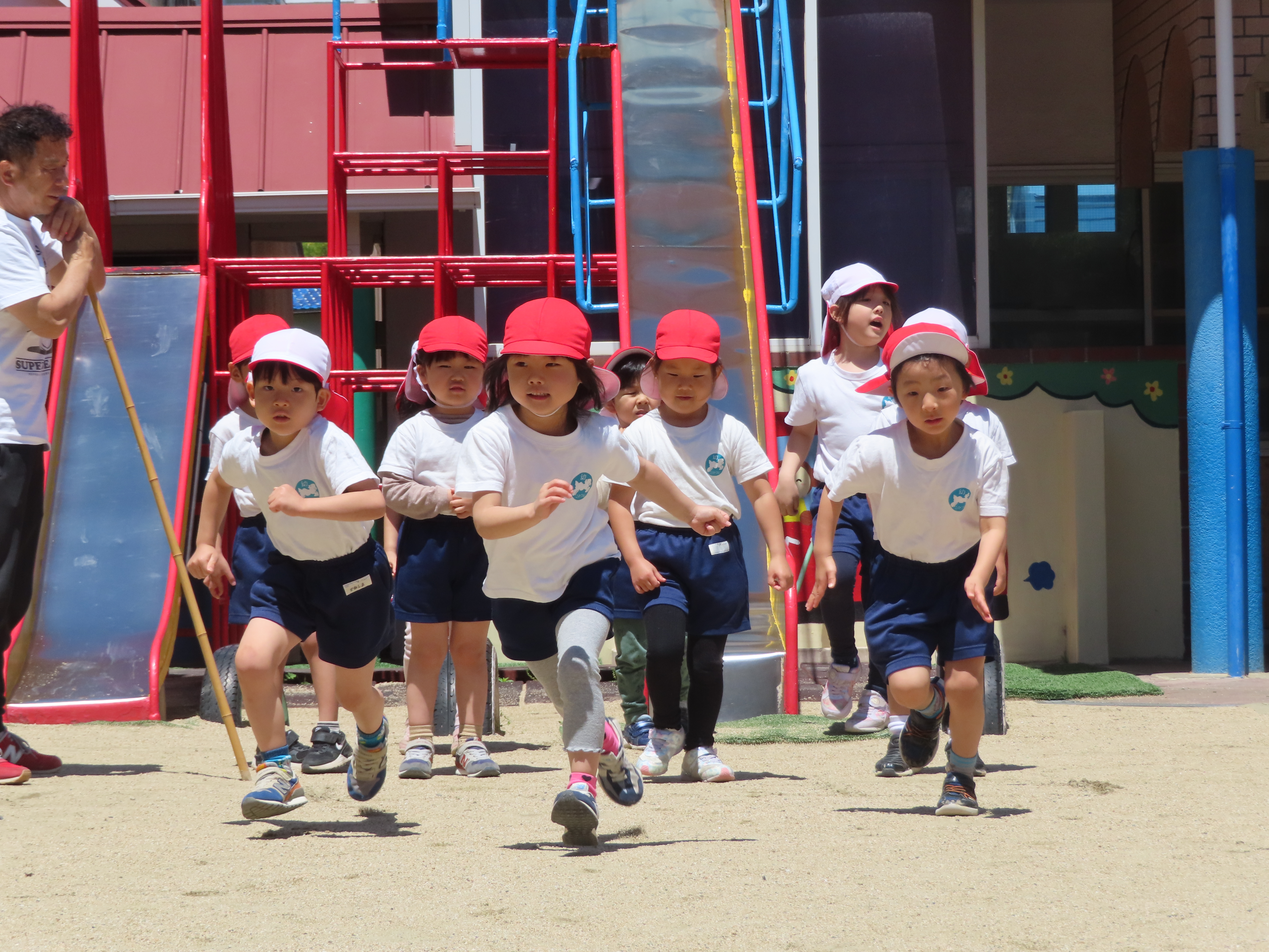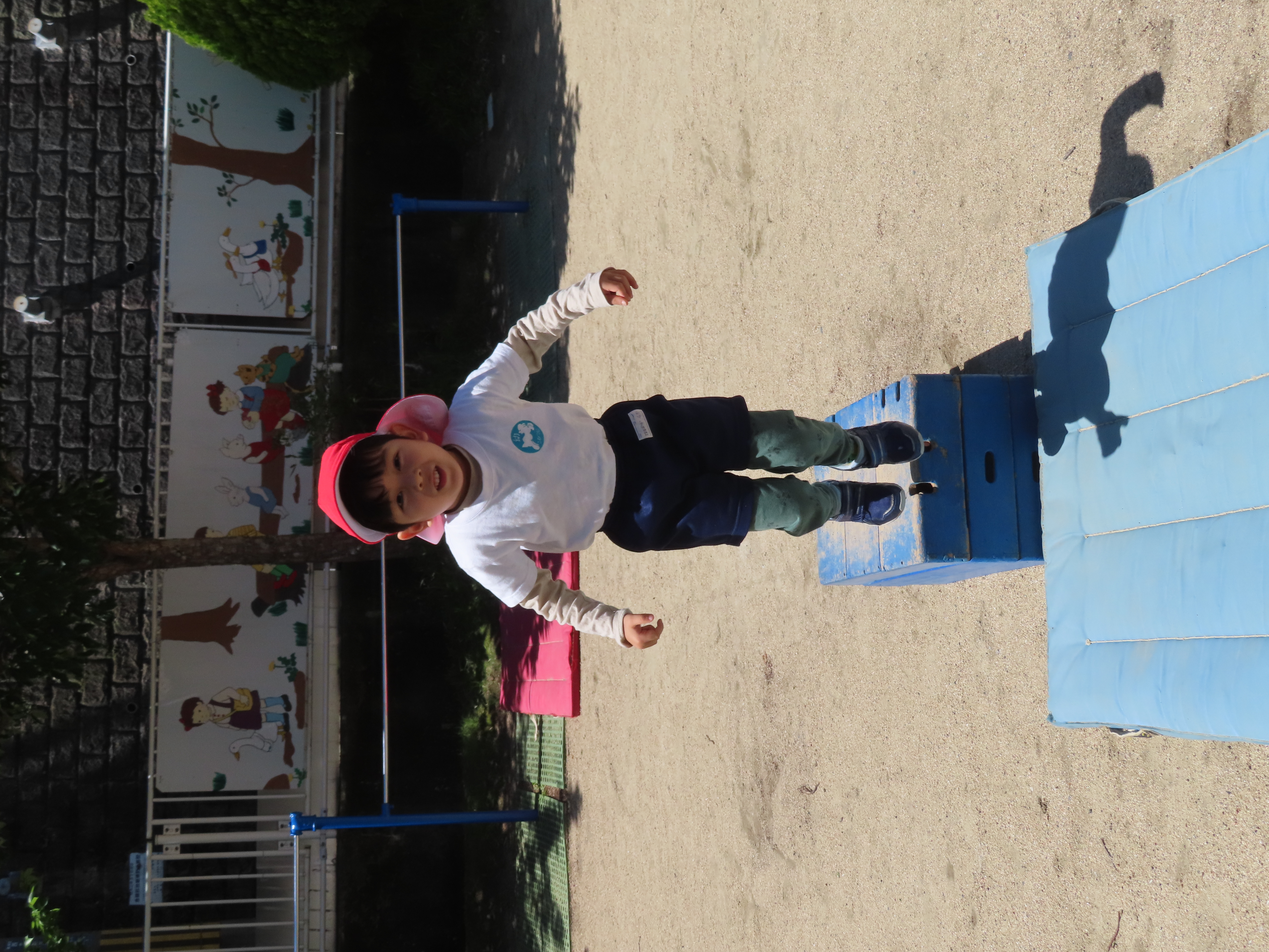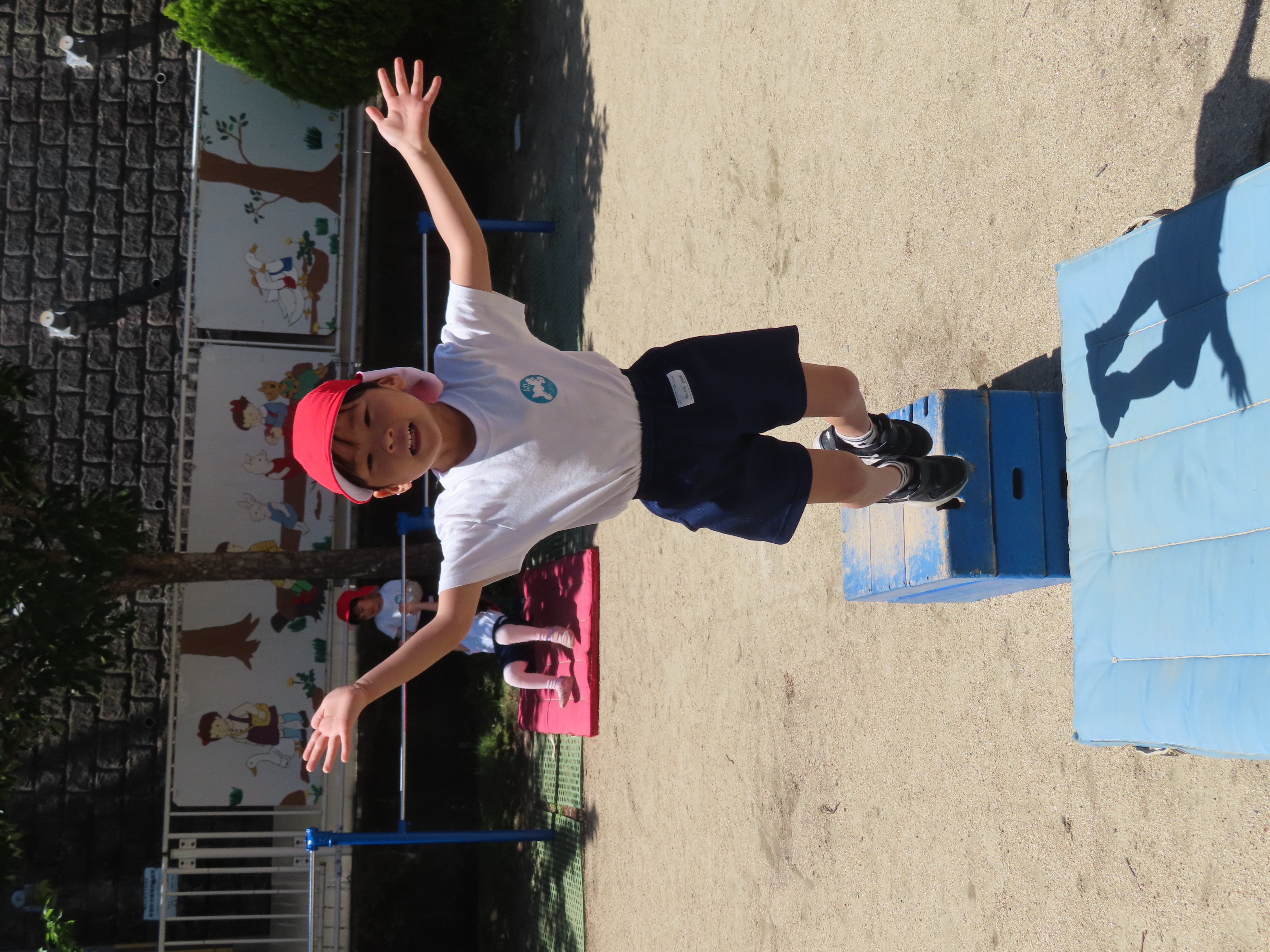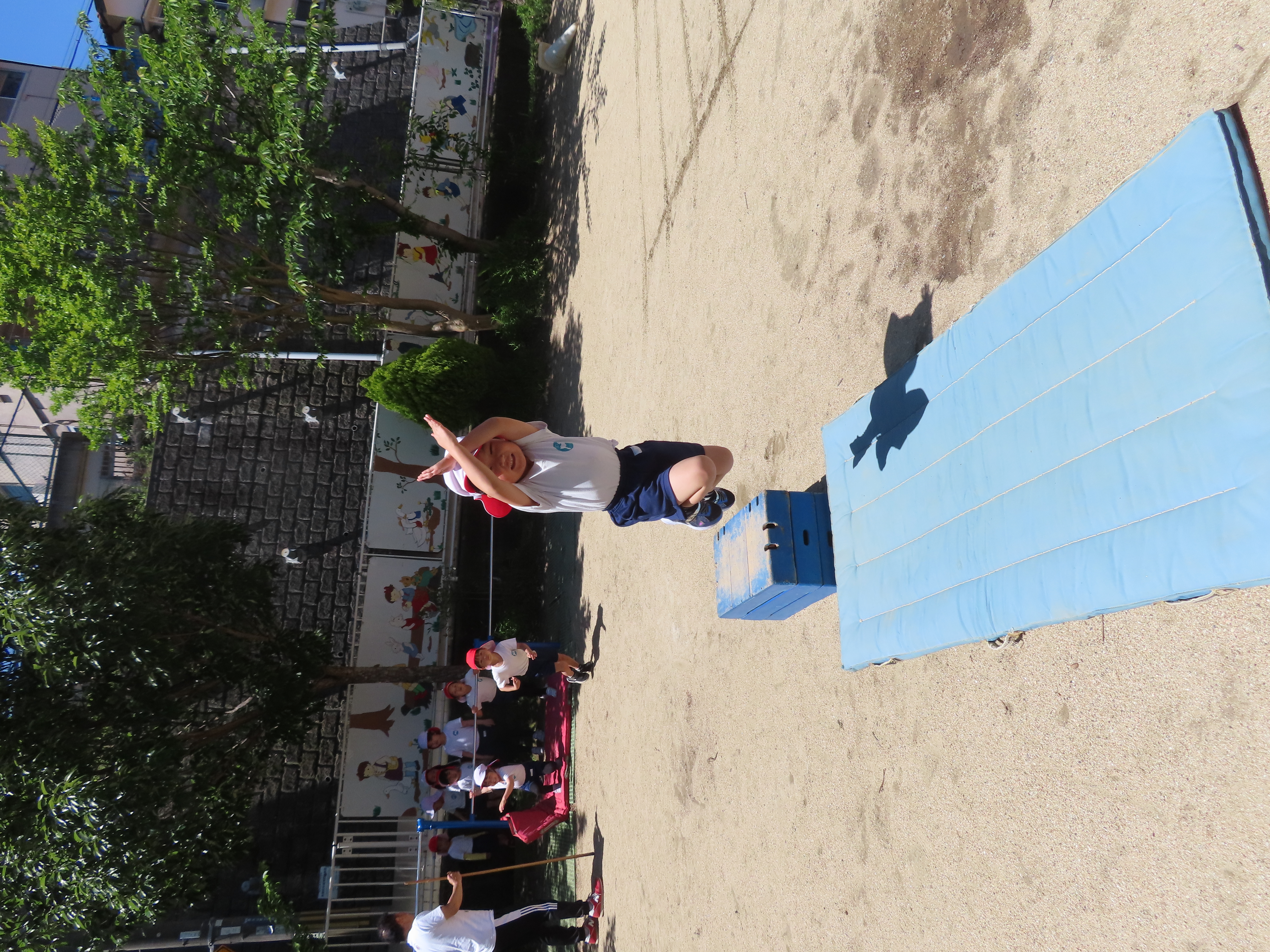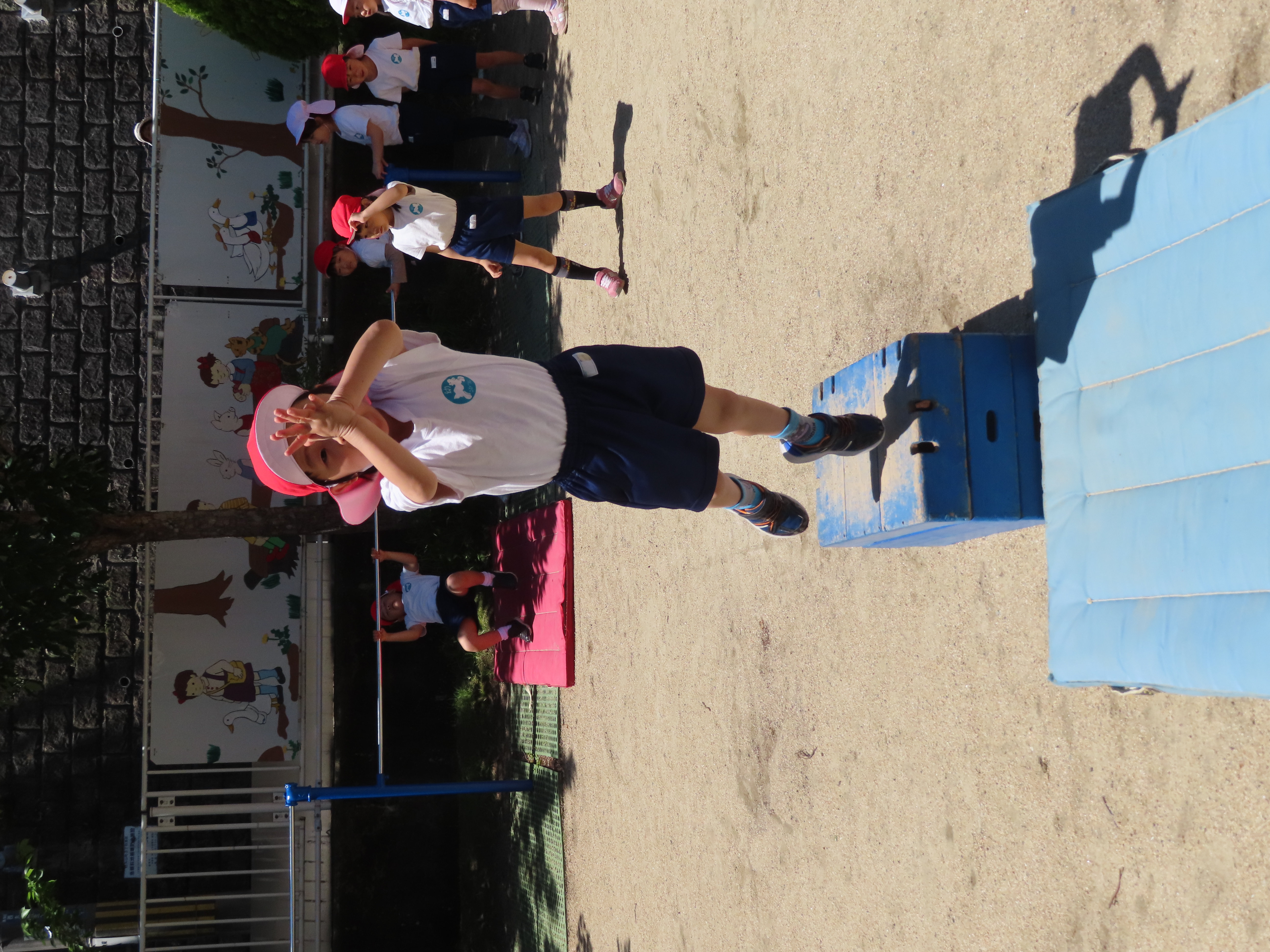 先日の体育あそびは、いいお天気の中、園庭で思いっきり身体を動かすことができました。