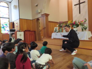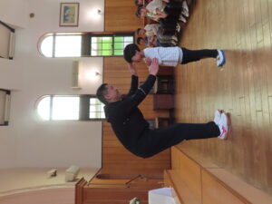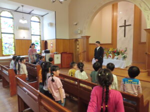 今日は、牧師の林先生と祝福の練習をしました。たくさんのことを覚えて、取り組んでくれています。
