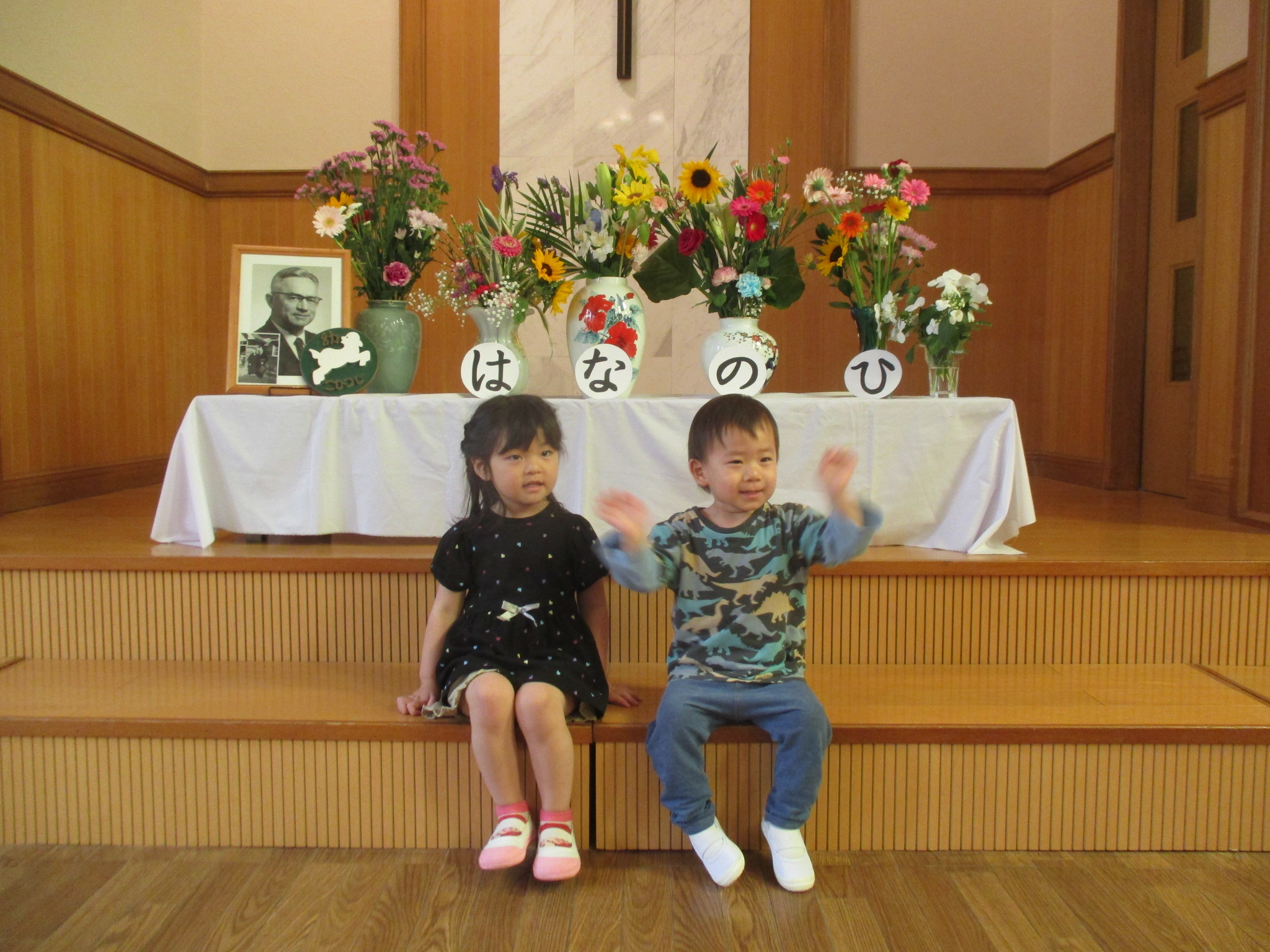 在園児さんが持ってきてくれたお花を見ながら礼拝をしました。