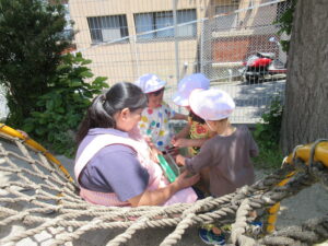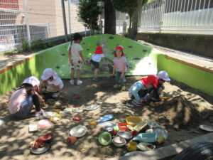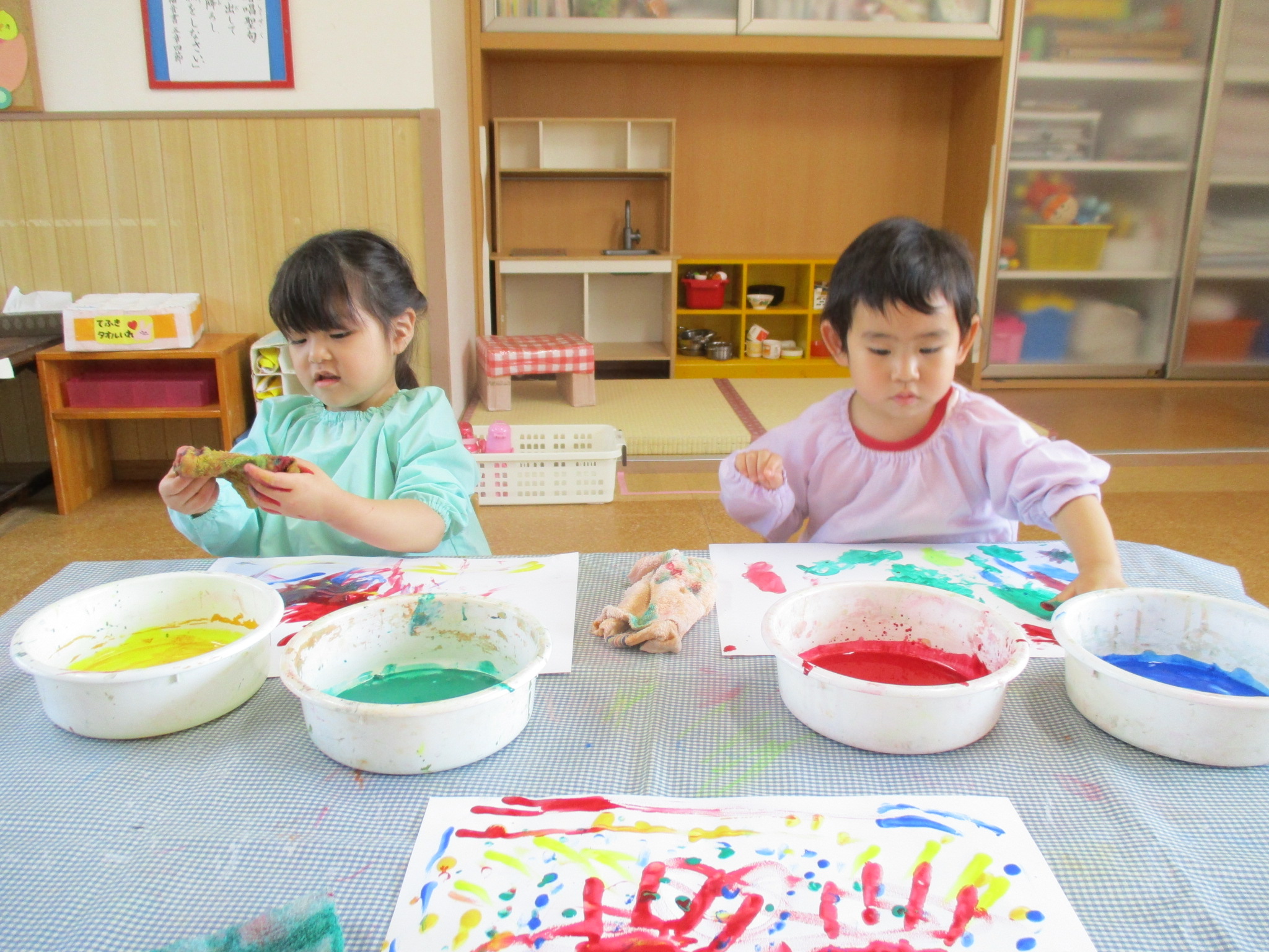 絵の具を使って遊んだり、お外で仲良く遊んだりしました💕