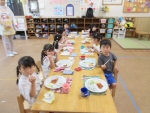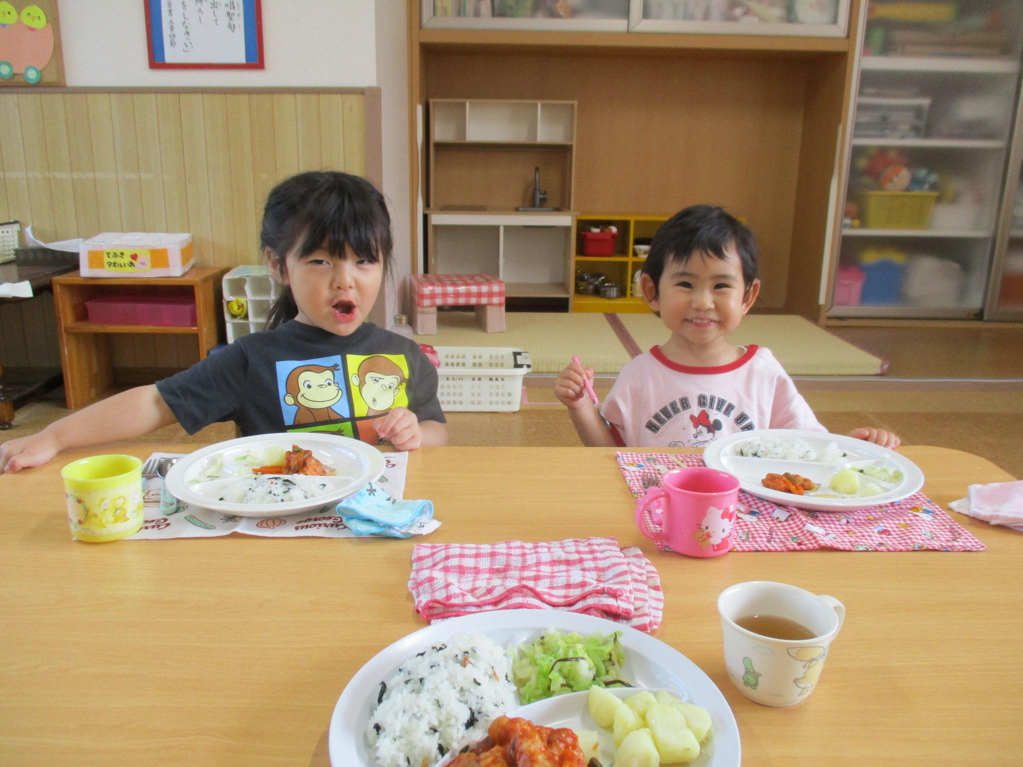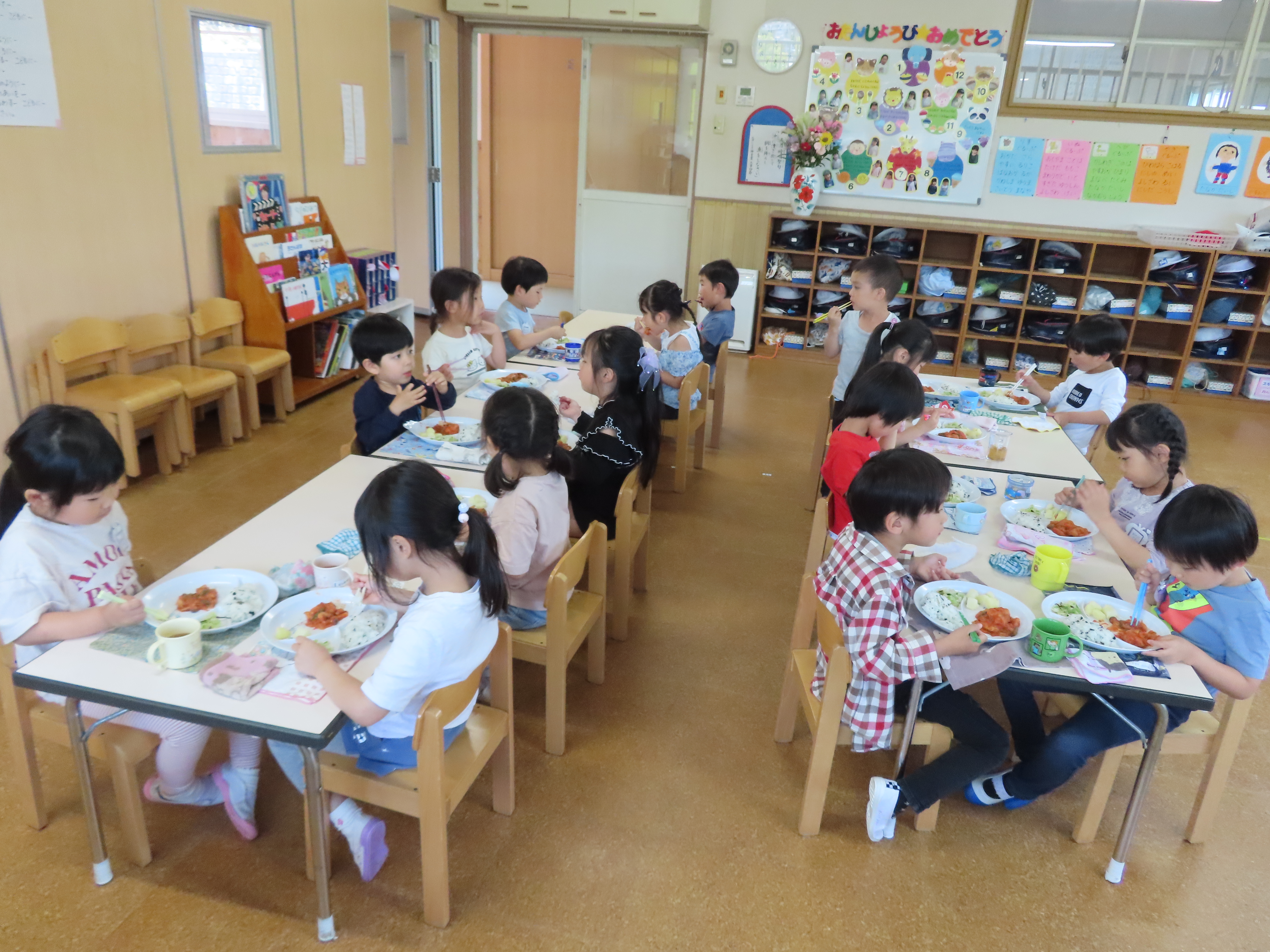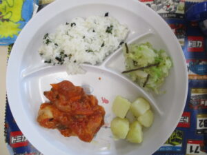 今日の給食はご飯・鳥トマト煮・昆布和え・小吹芋でした。
