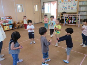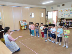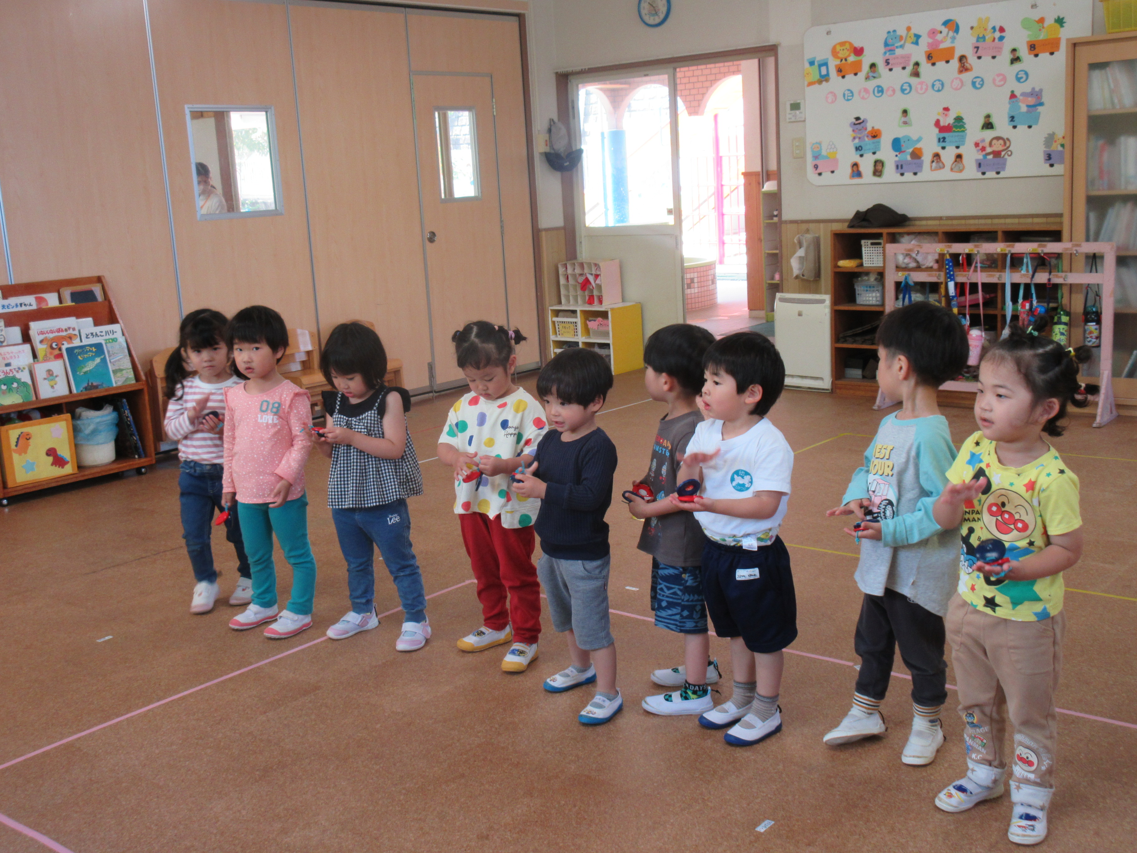カスタネットで動きながら鳴らしてみたり、みんなと一緒に演奏したりしました。