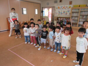 「英語の先生が来るの?」「何するのかな~」と始まる前からワクワクしている子どもたちでした♪