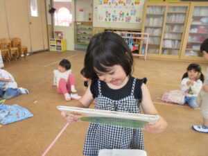 そして、絵本屋さんをしました!どれにしようかなぁ~?」と迷いながらも