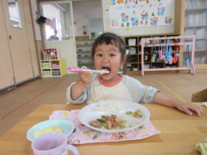 今日の2号認定の子どもたちの給食です!給食、お弁当ともに美味しく頂きました(^_^)/~