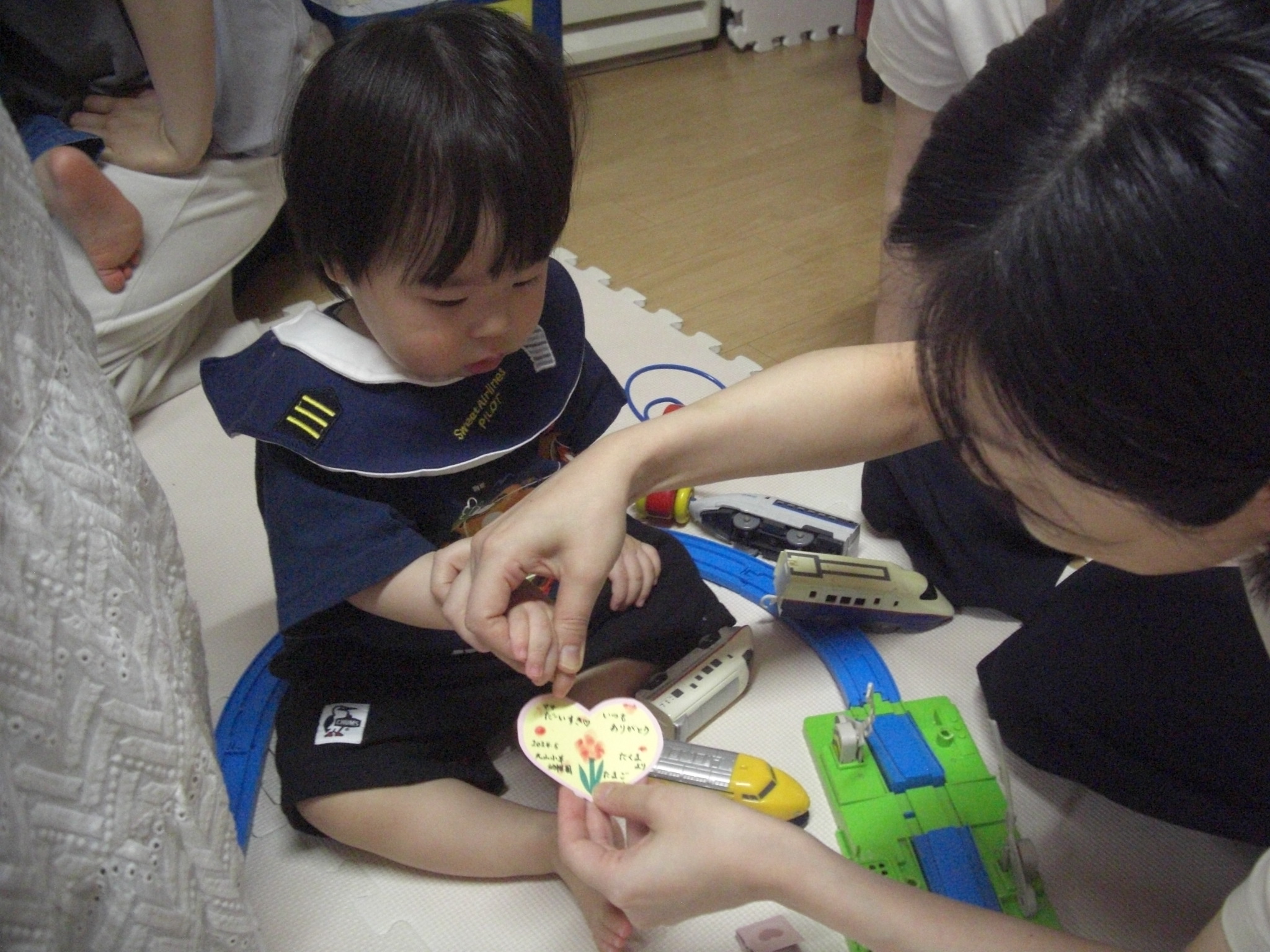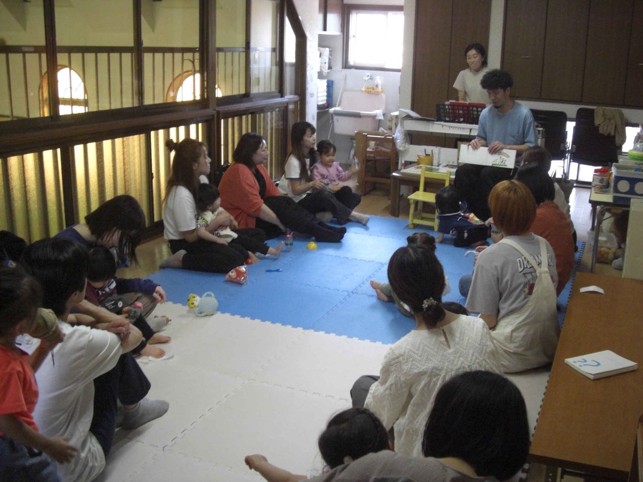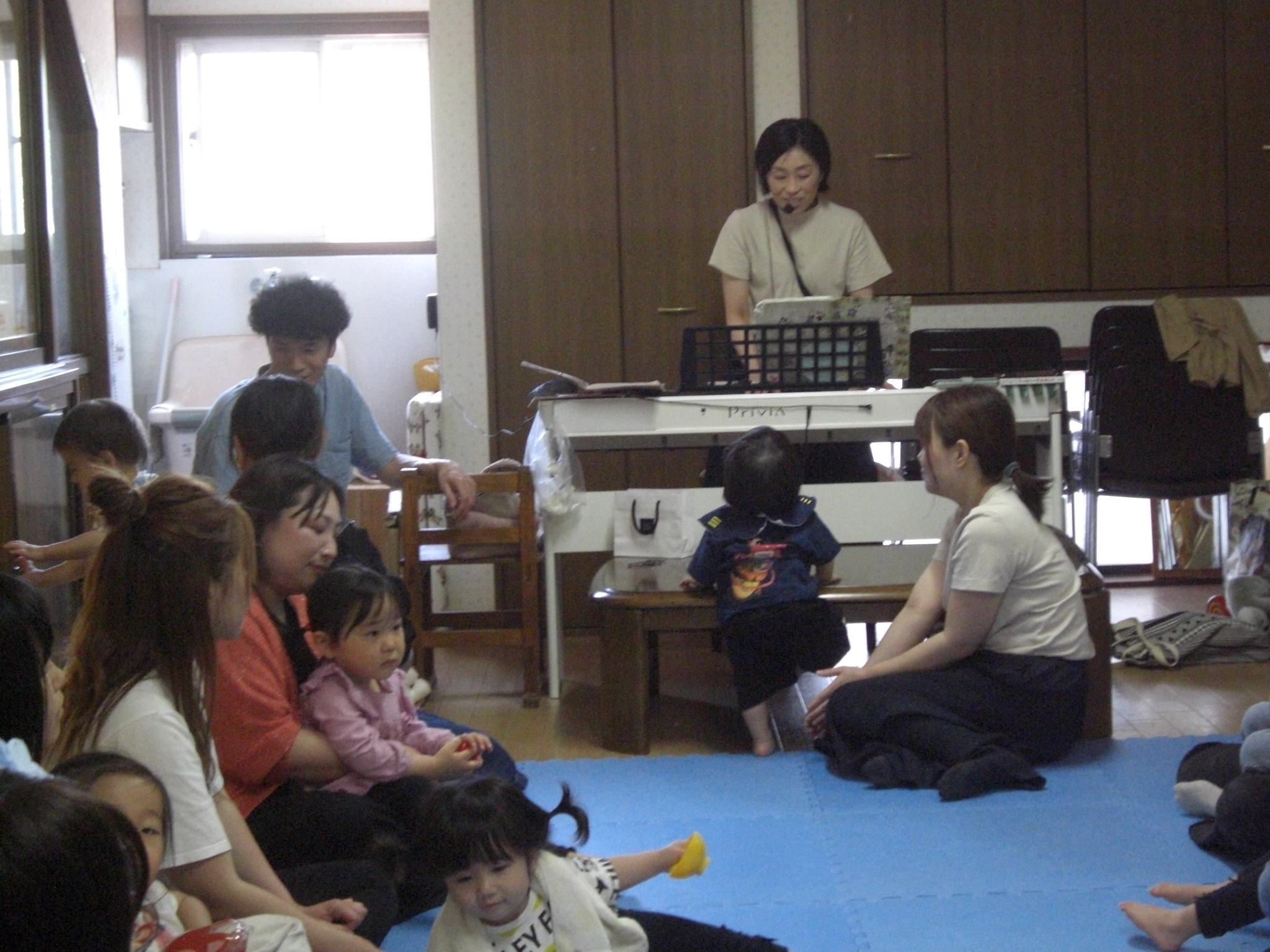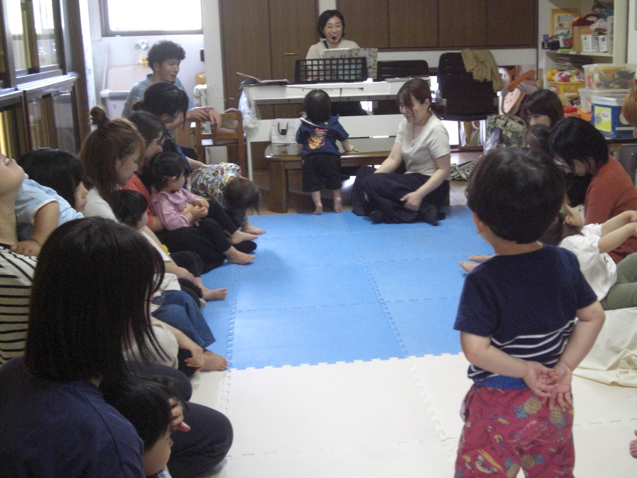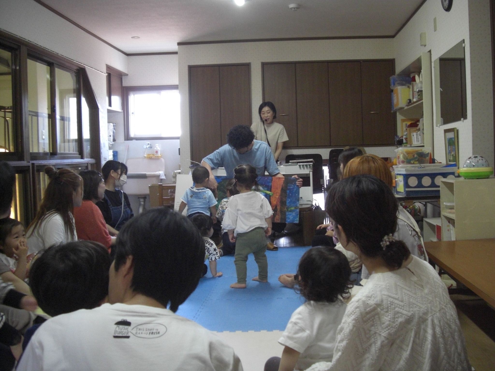 部屋遊びをしていると、、サプライズで尚美先生のご主人が登場!!お誕生日会は、ご夫婦の素敵なバースデーソングの歌声に包まれて、温かい雰囲気の会となりました♪♪お母さんには、お子さんの名前の由来を教えて頂き、こちらもほっこりと温かい気持ちになりました😊たまごクラブの子どもたちが、これからもすくすくと元気に大きくなりますように・・☆彡