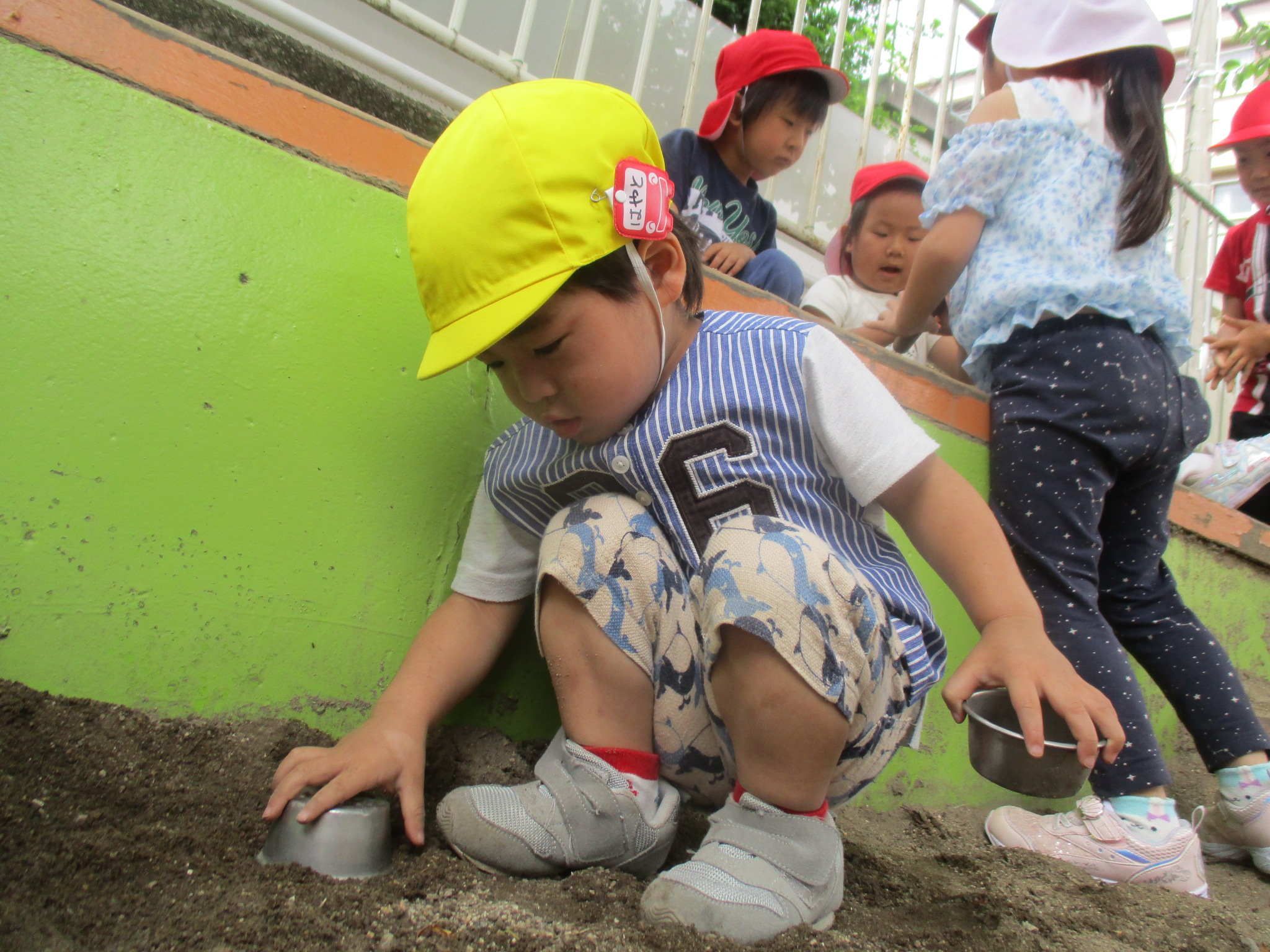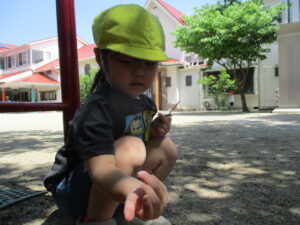 また園庭にはたくさんいるダンゴムシを恐る恐る触る子どもたち😊