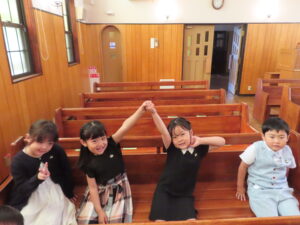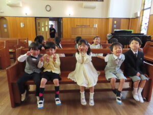 今日、持ち帰りました、讃美歌はまた幼稚園にお持ちください。