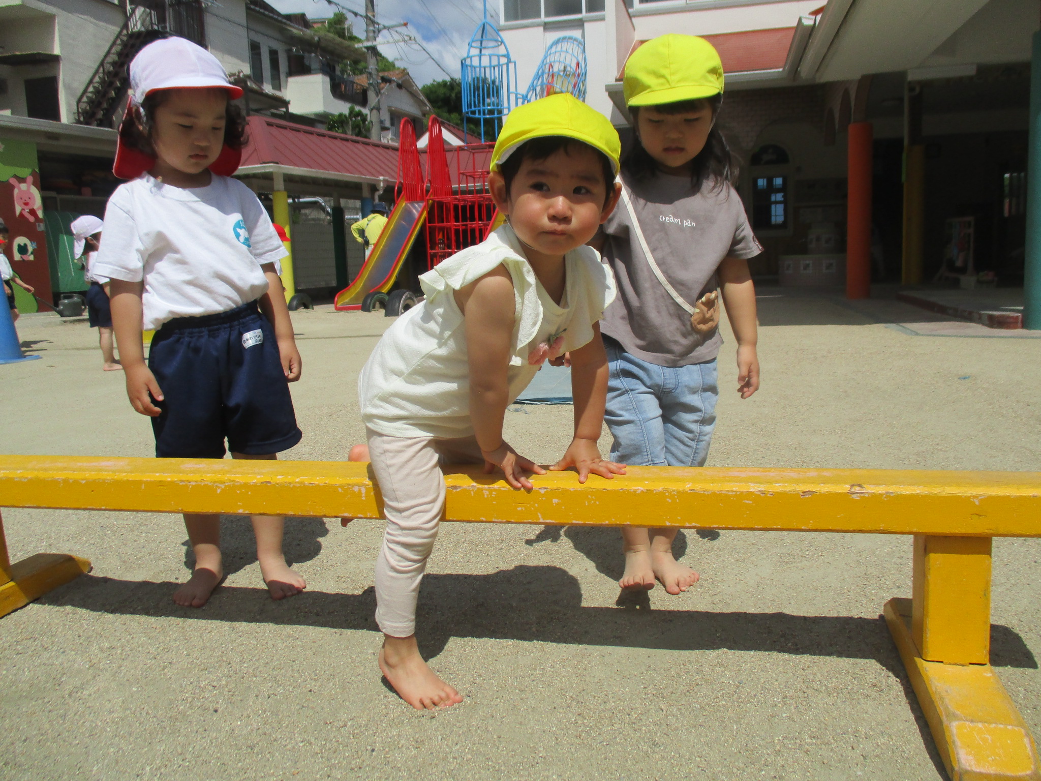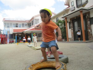 いい天気の中たんぽぽ組さんとサーキット遊びをしました。