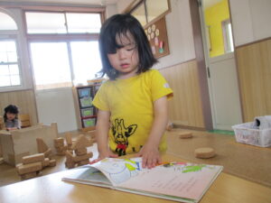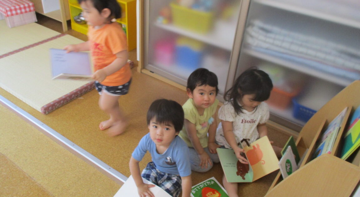 お部屋遊びでは子どもたちが絵本を読んでいます📖
