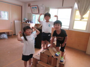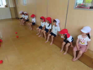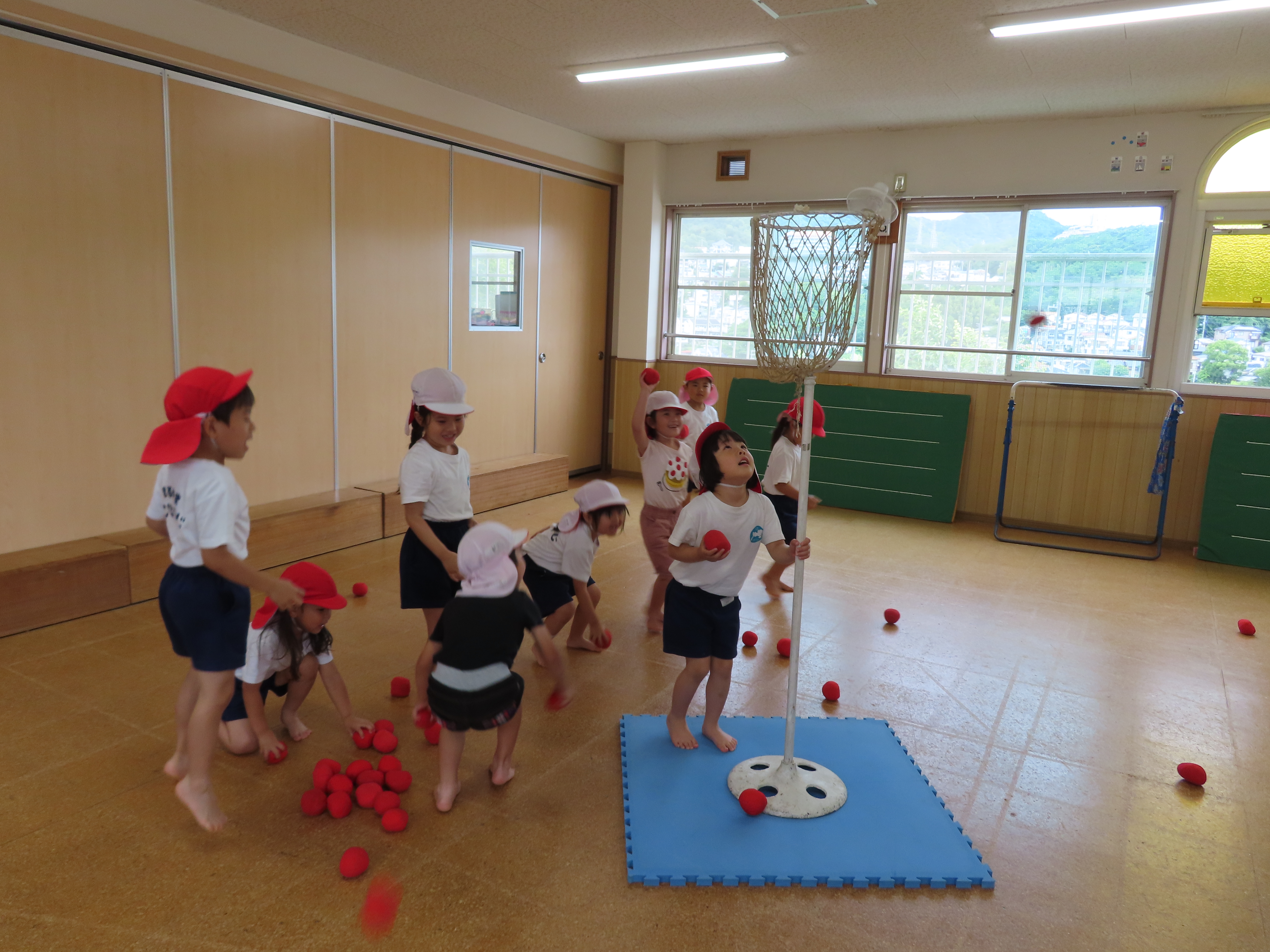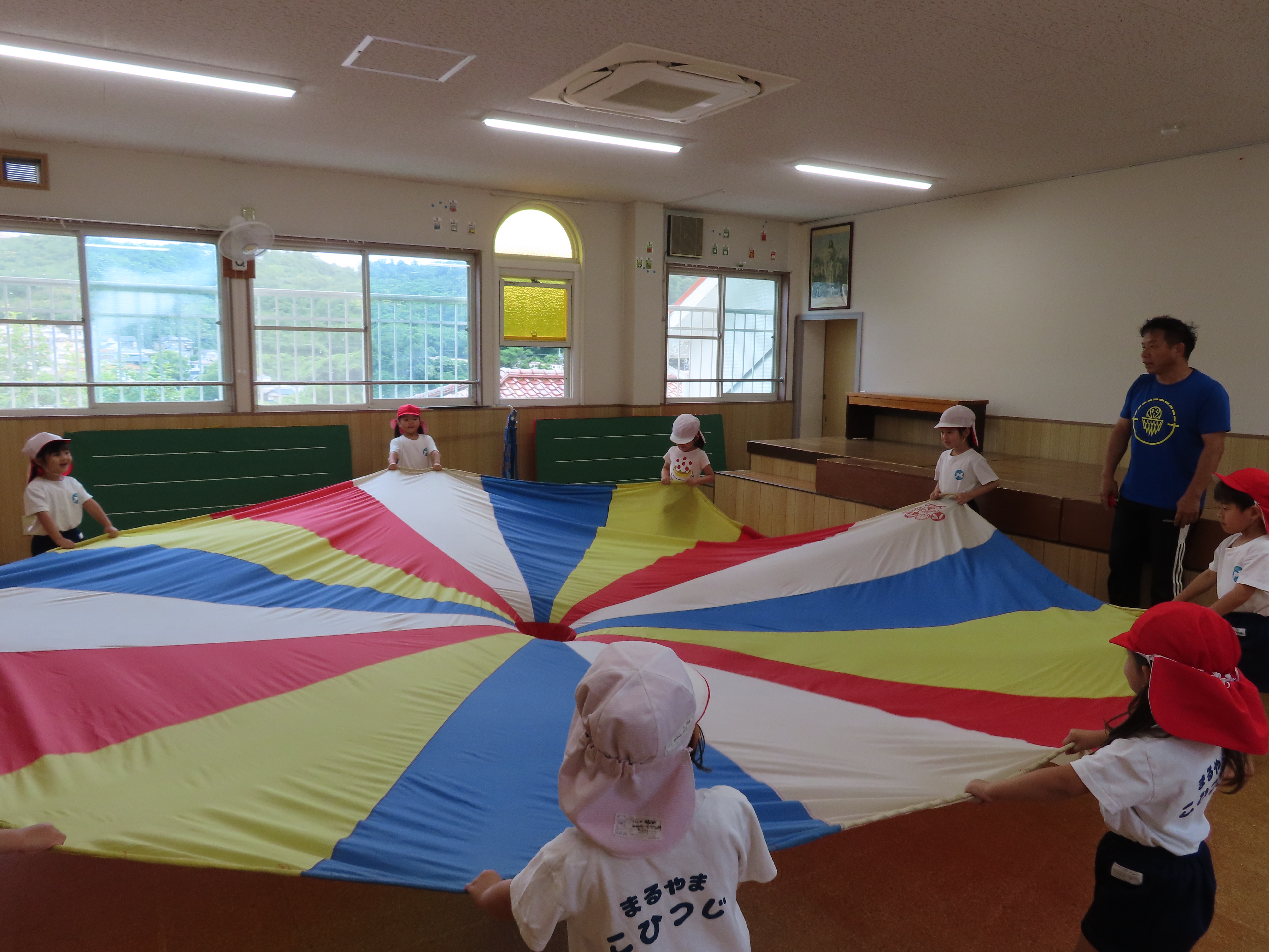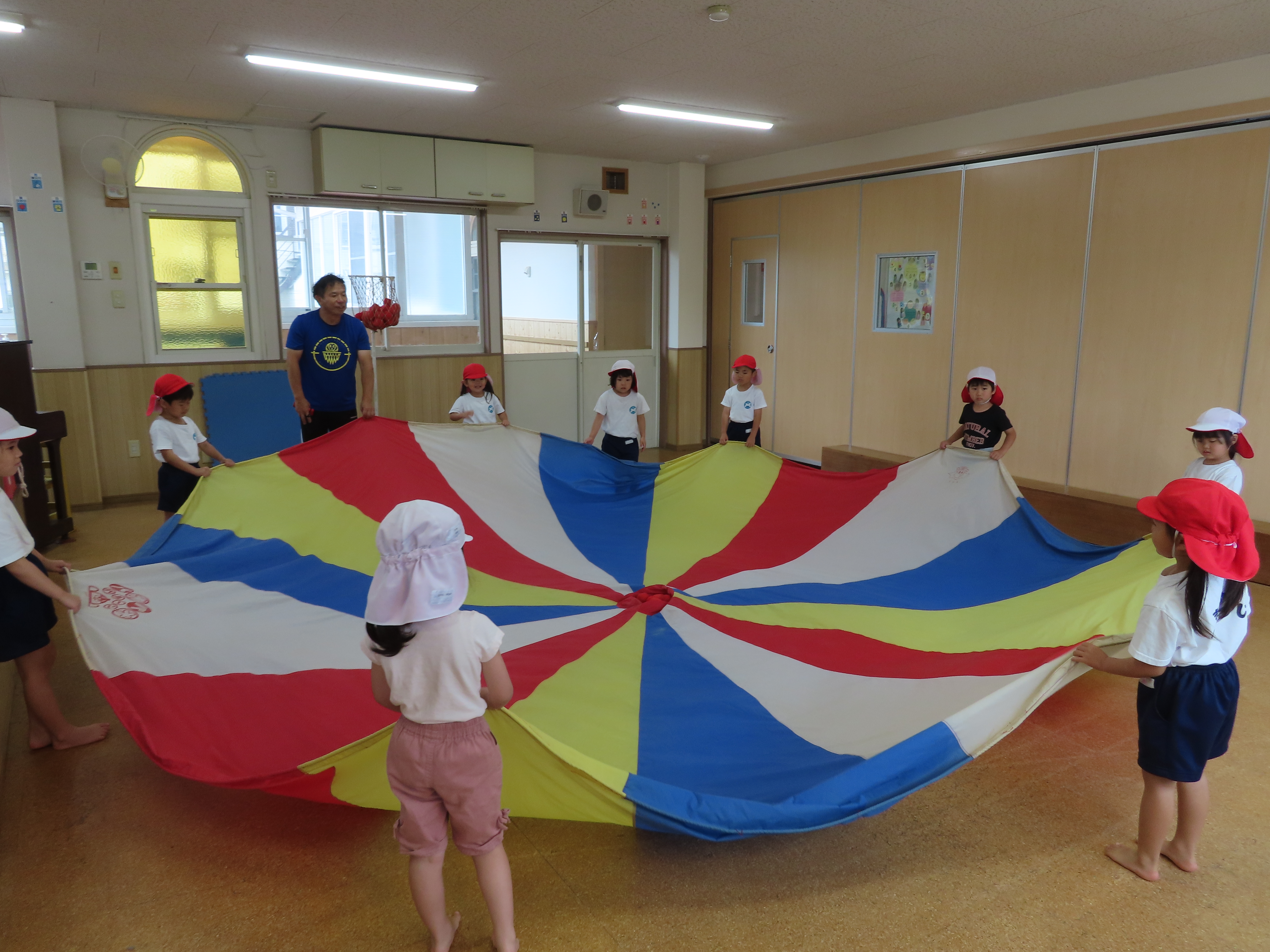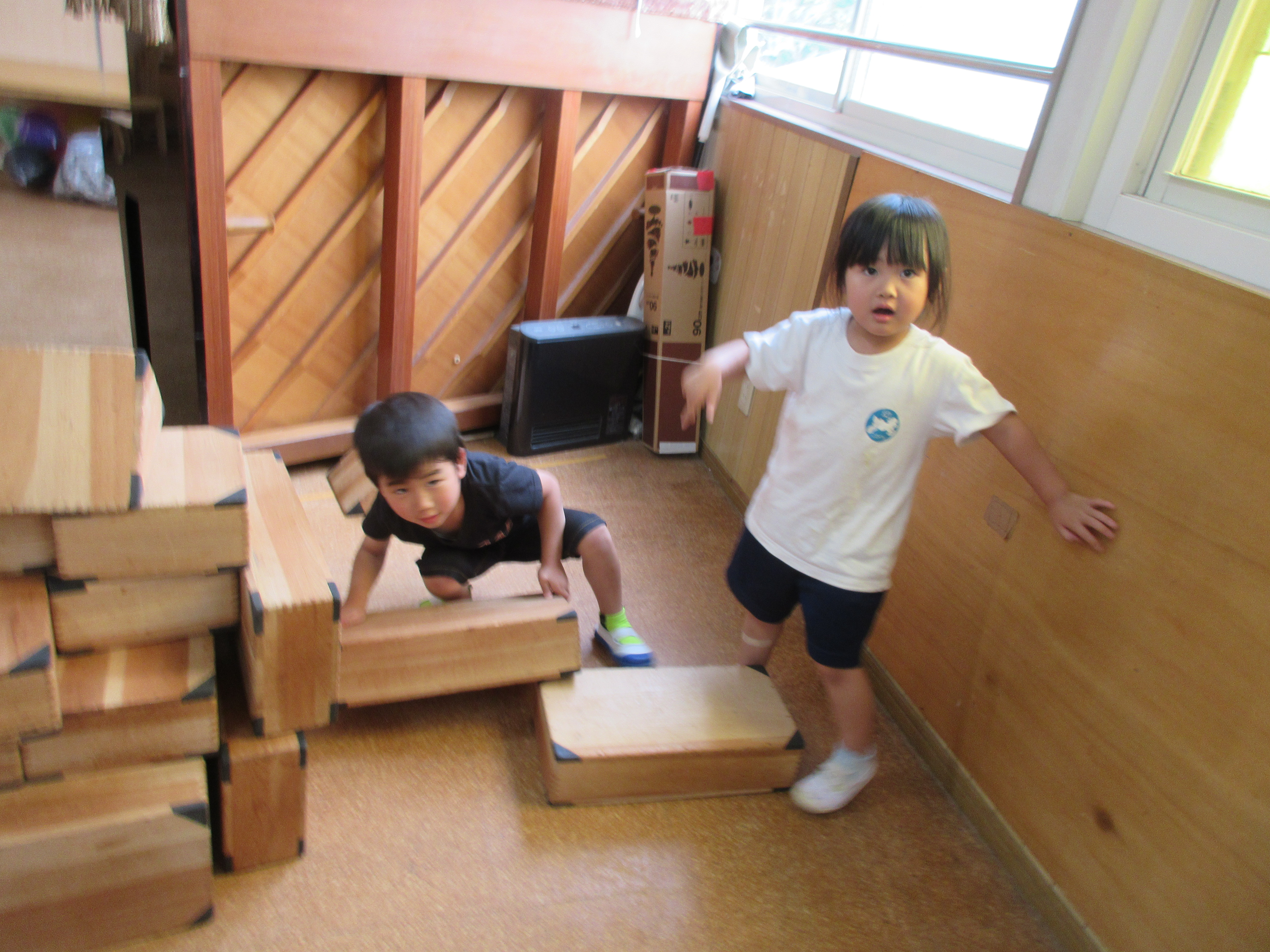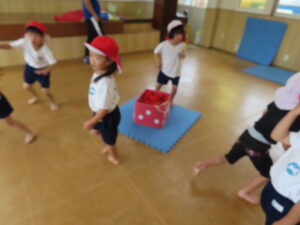 午前中は大雨で、予定していたプール遊びはできませんでしたが、舞台のお部屋で体育あそびをしました🏃‍♂️