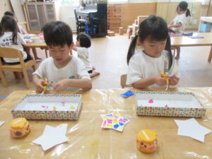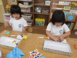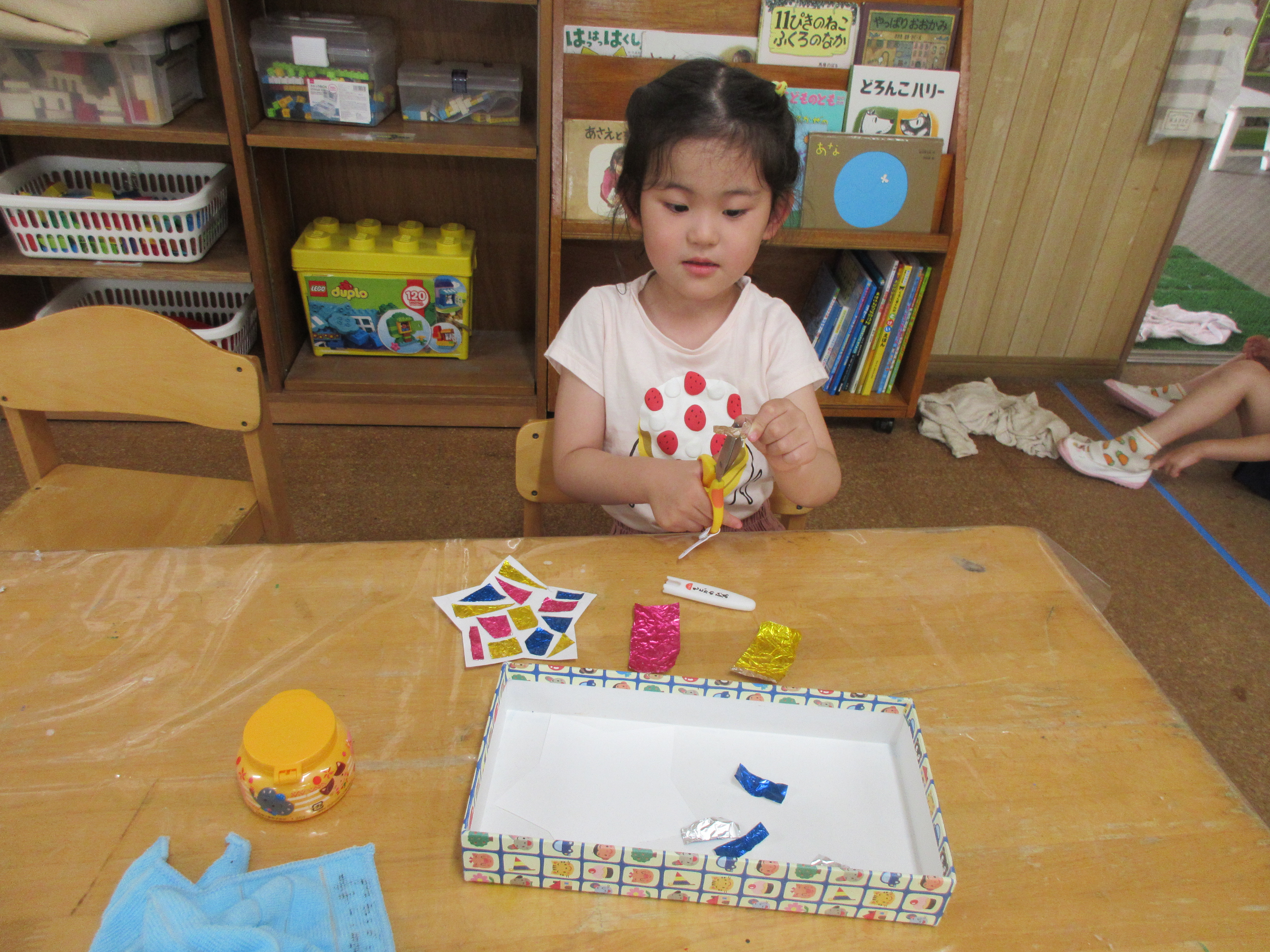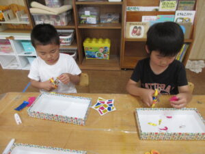 はさみや糊の使い方が少しずつ上手になったきたすみれ組さんです(^^♪