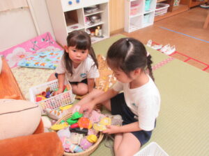 ごはんの後は、大型積み木や迷路、おままごとなどそれぞれ好きな遊びに夢中になっていた子どもたちです!