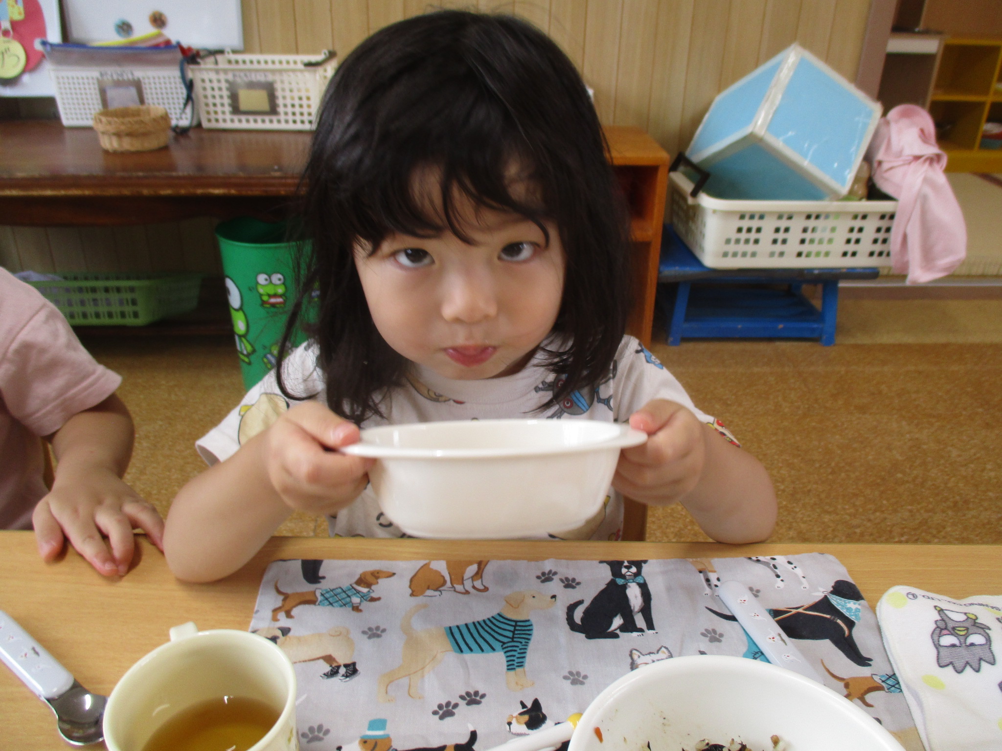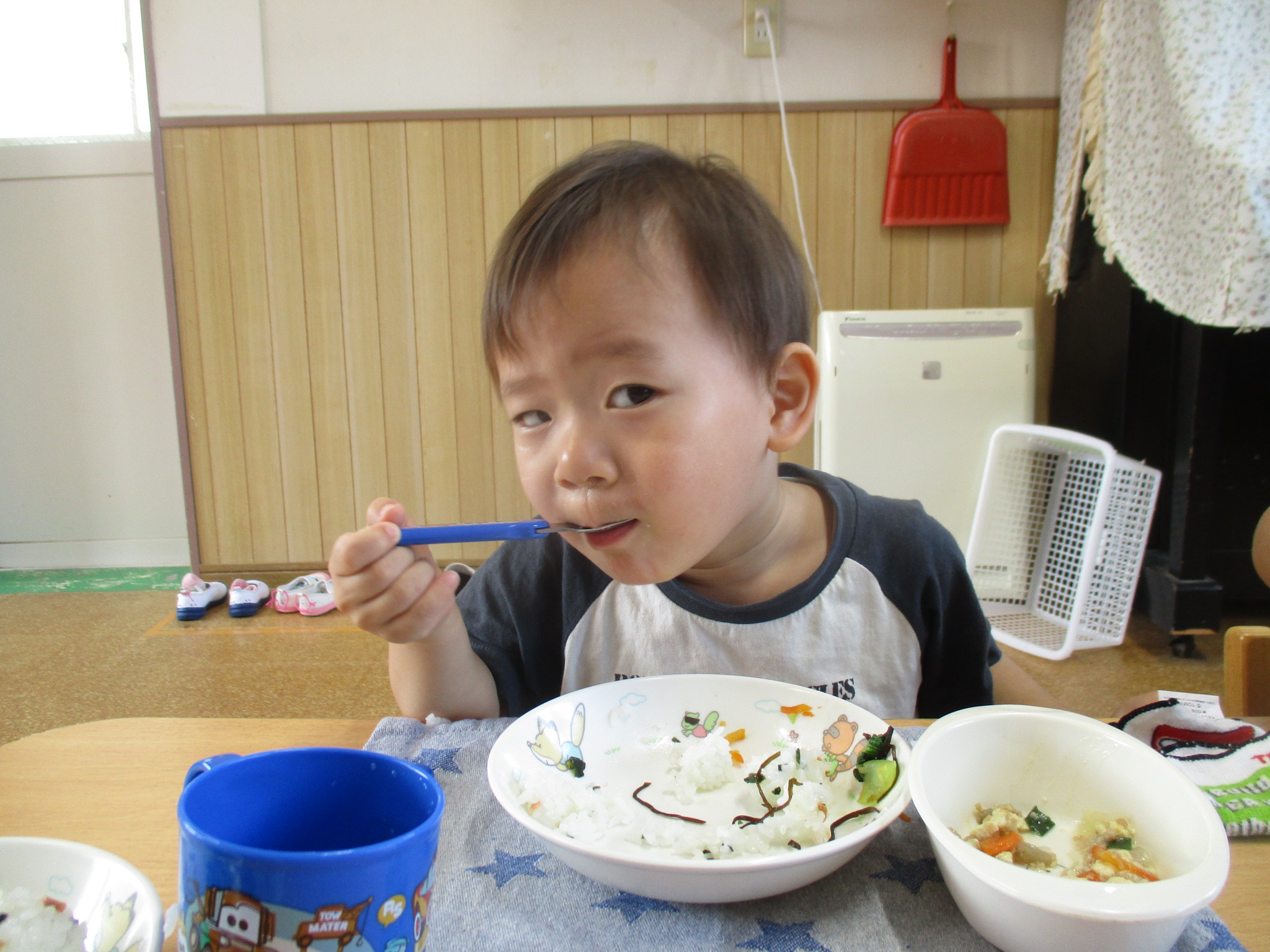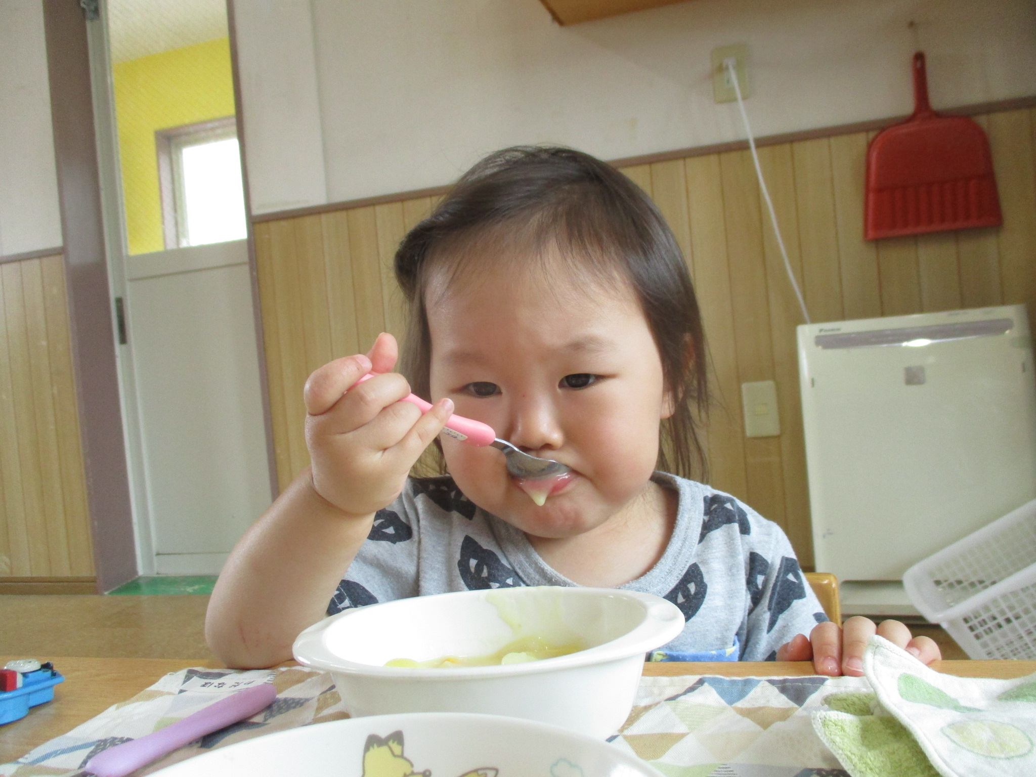 今日の2号さんの給食はチャプチェ・ごはん・味噌汁・スイカでした。