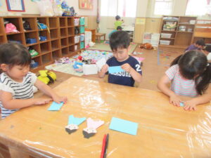 今日はプールあそびの予定でしたが雨が降っていたため、各クラス、お部屋で過ごしました🌼