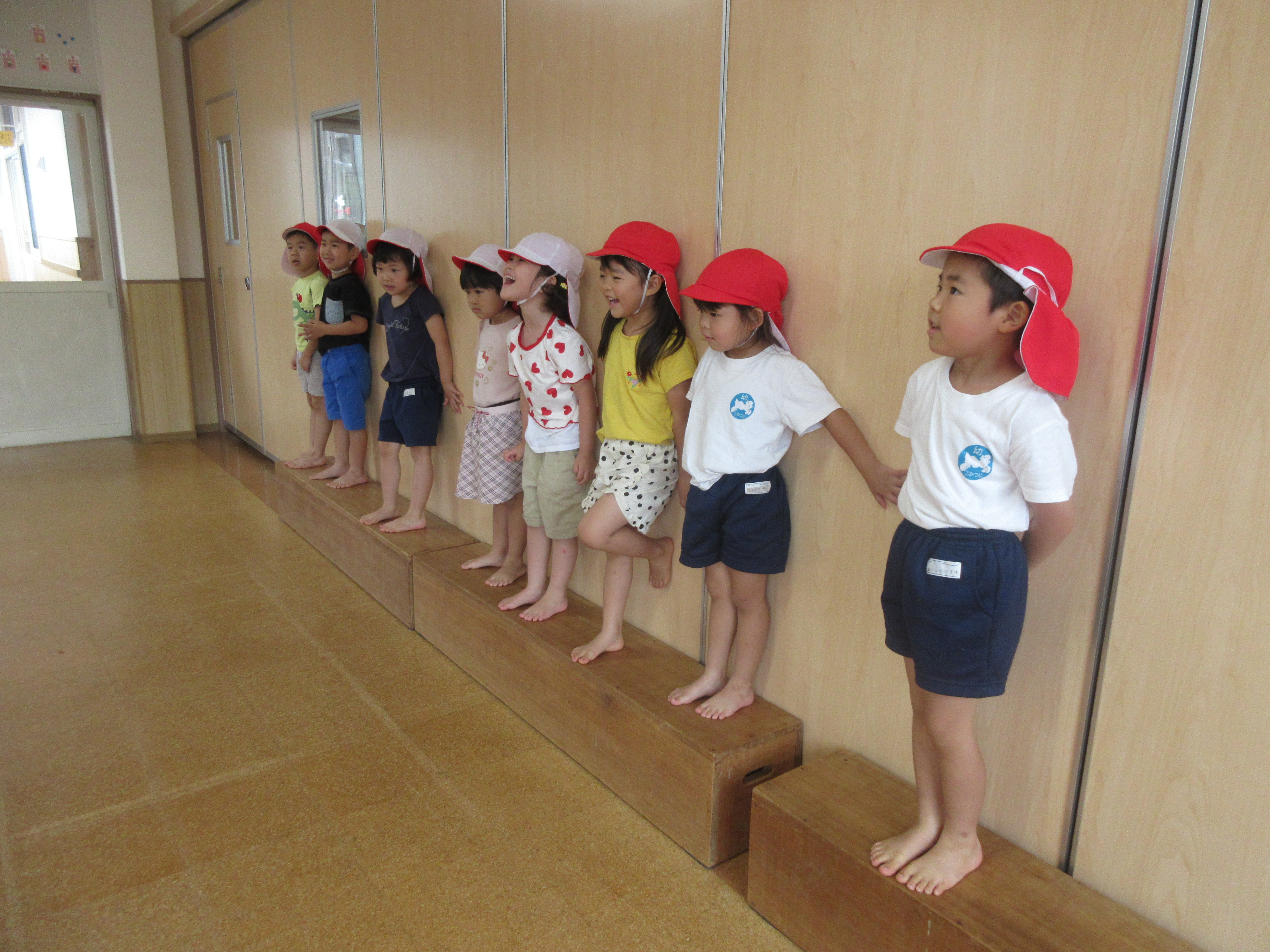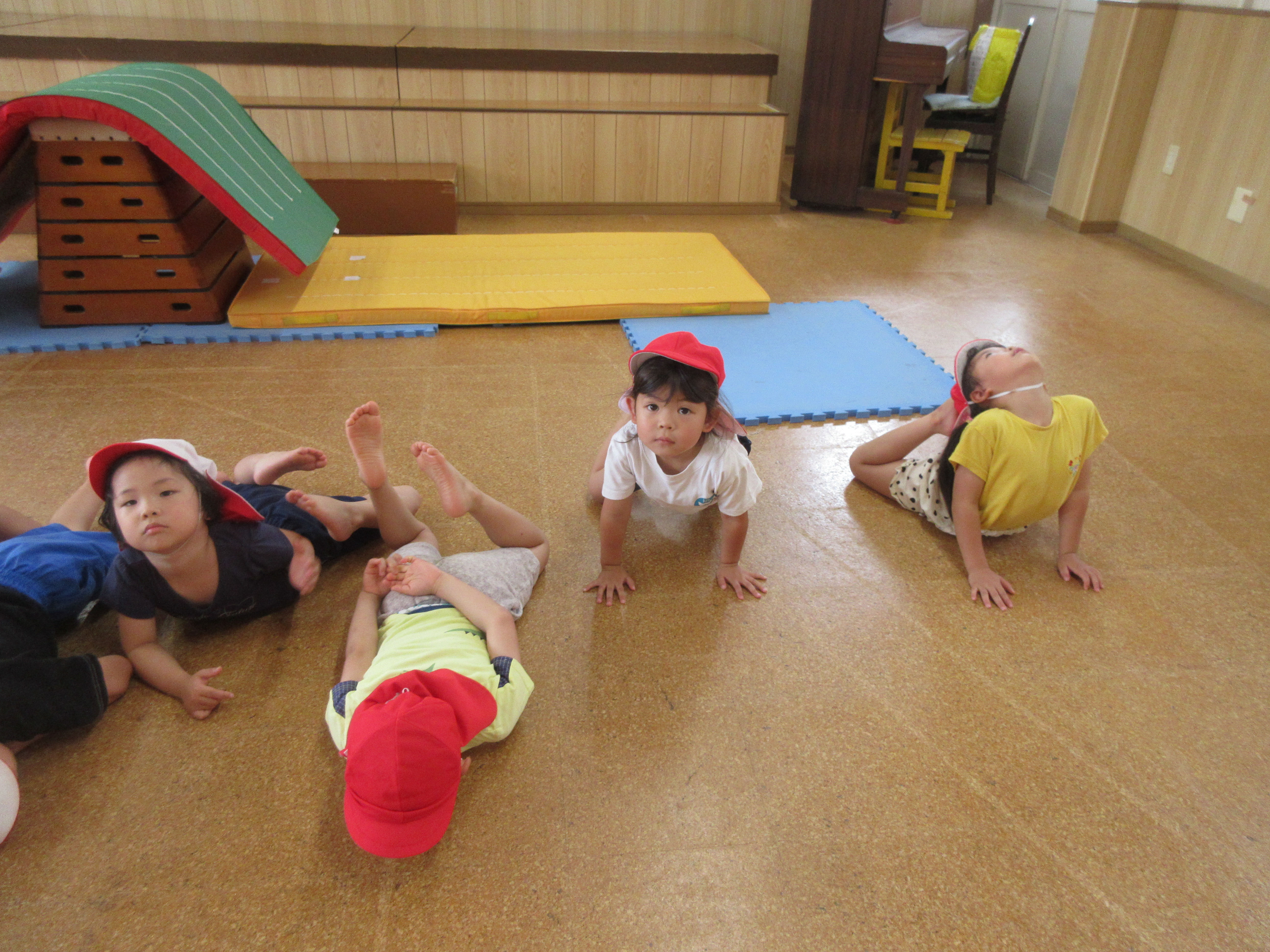 今日はプールに入る予定でしたが、雨が降っていたため、舞台のお部屋で体育あそびをしました🏃♂️