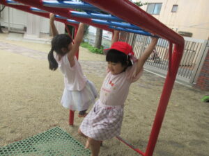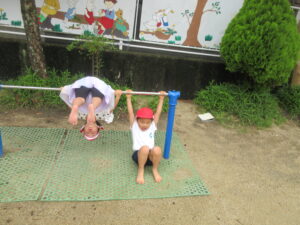鉄棒はお外でも自分で練習している姿もあり、頑張っている子どもたちです(^^♪