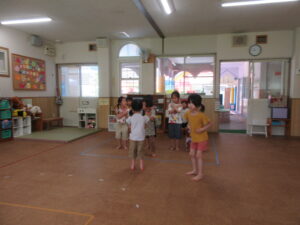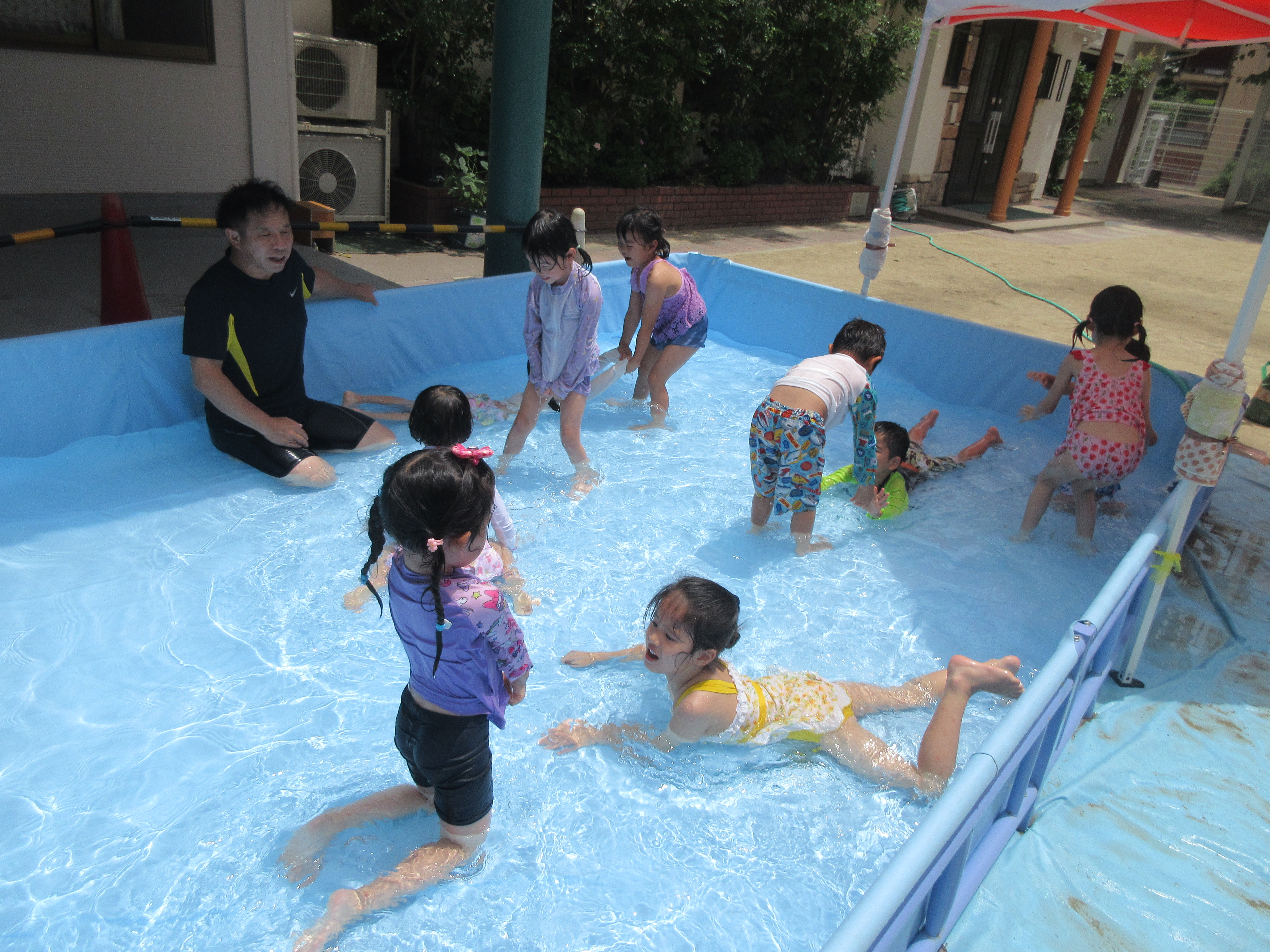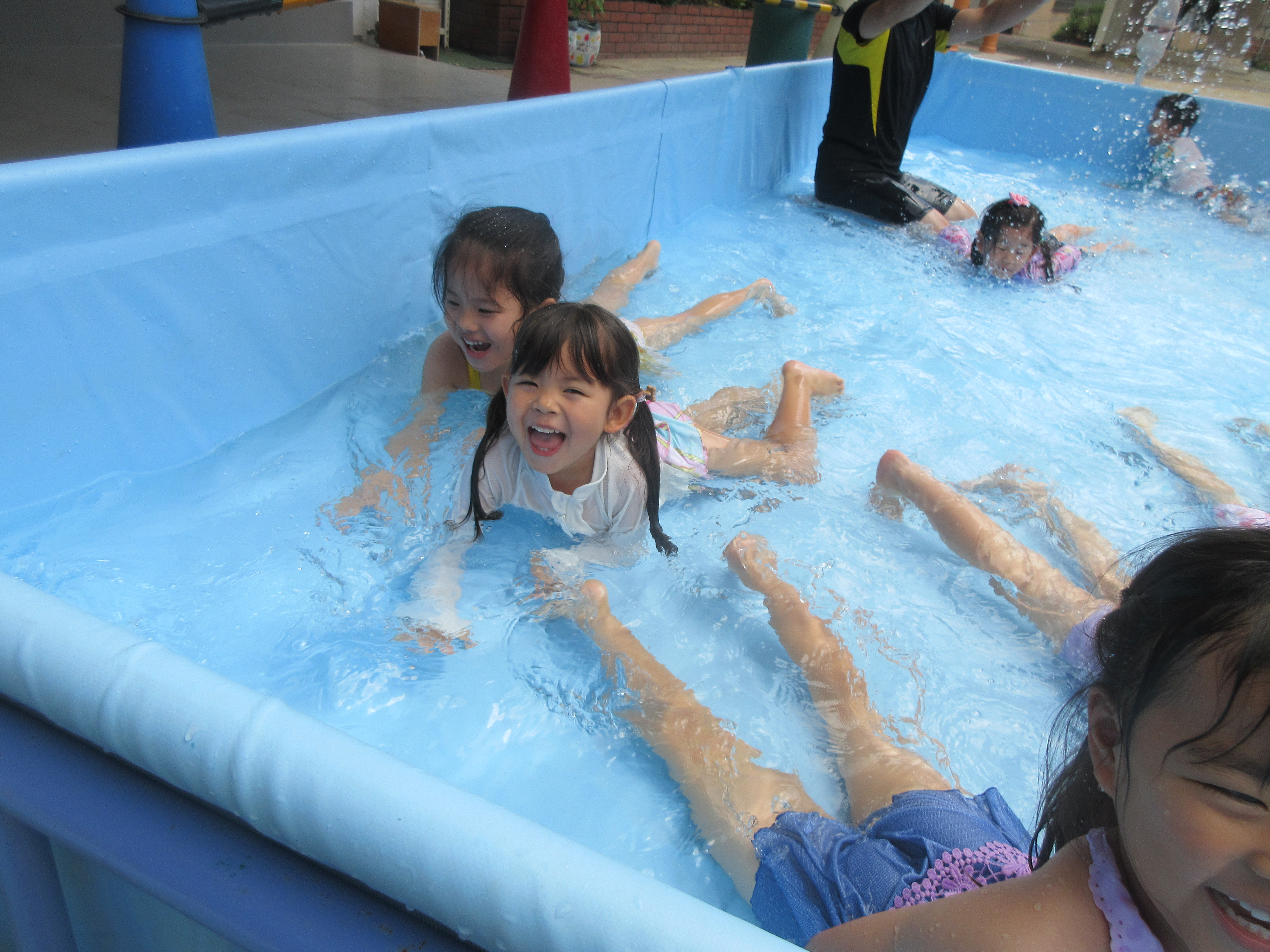 今日は、体育あそびで大西先生と一緒にプールに入りました💦