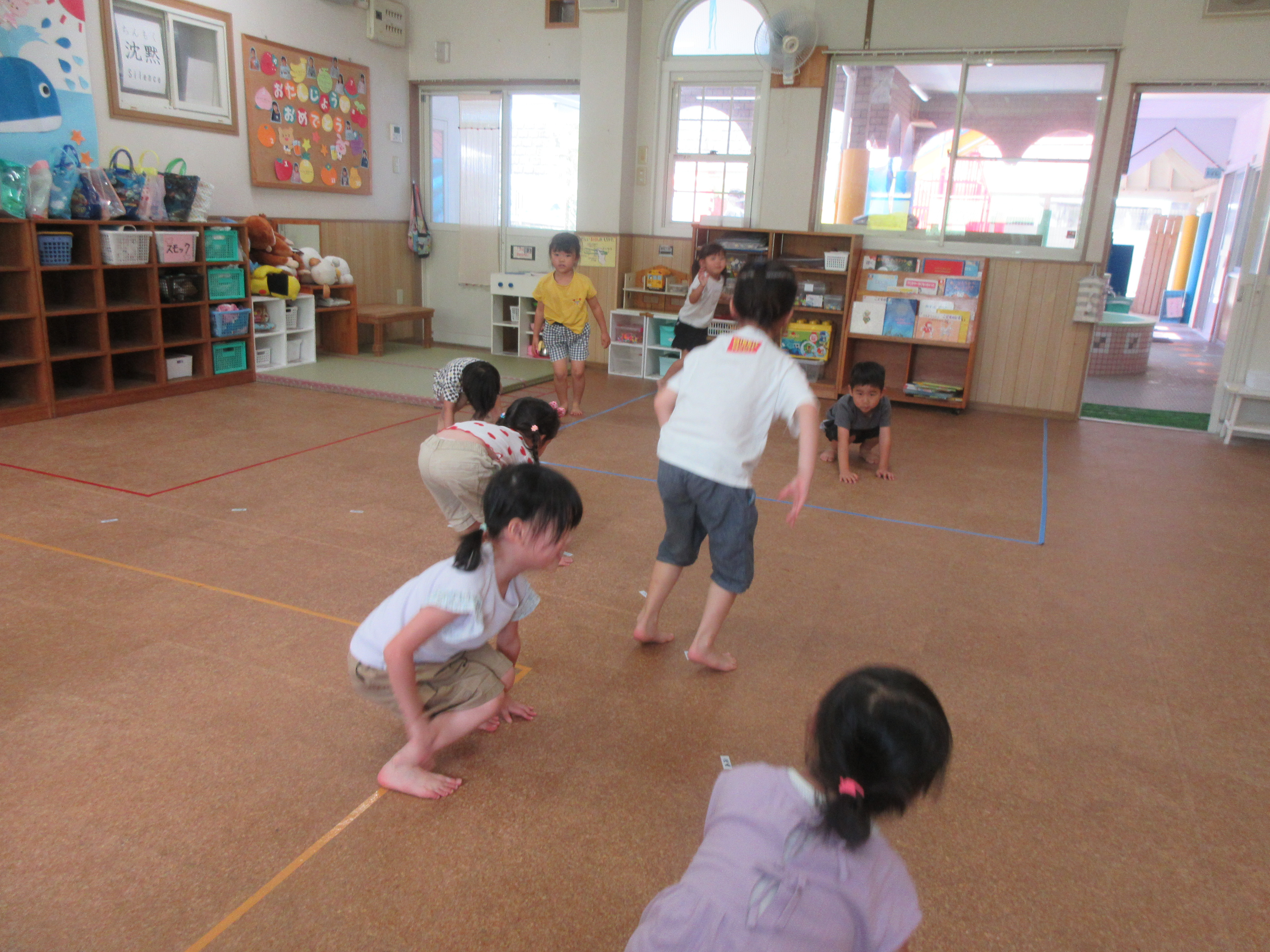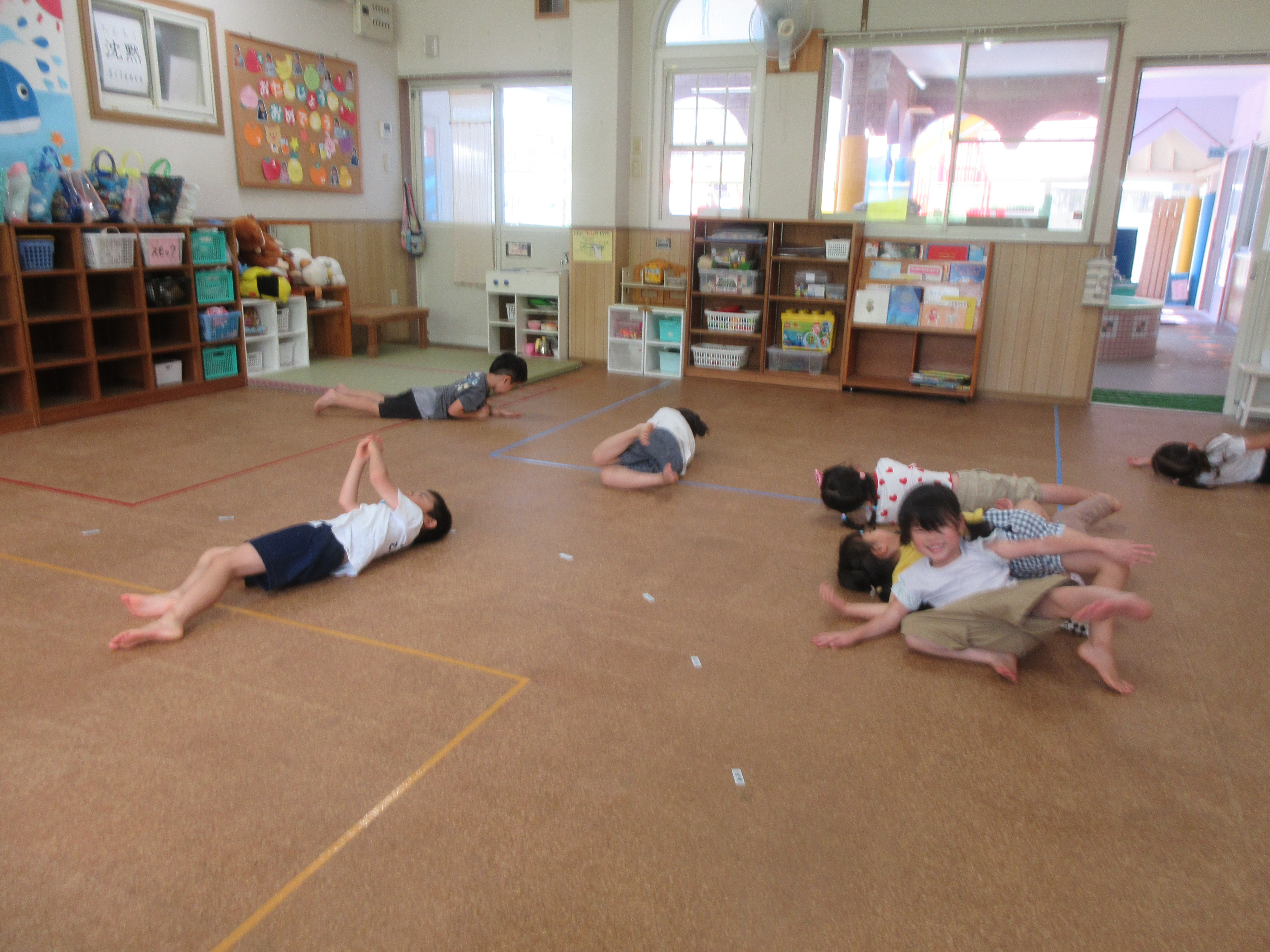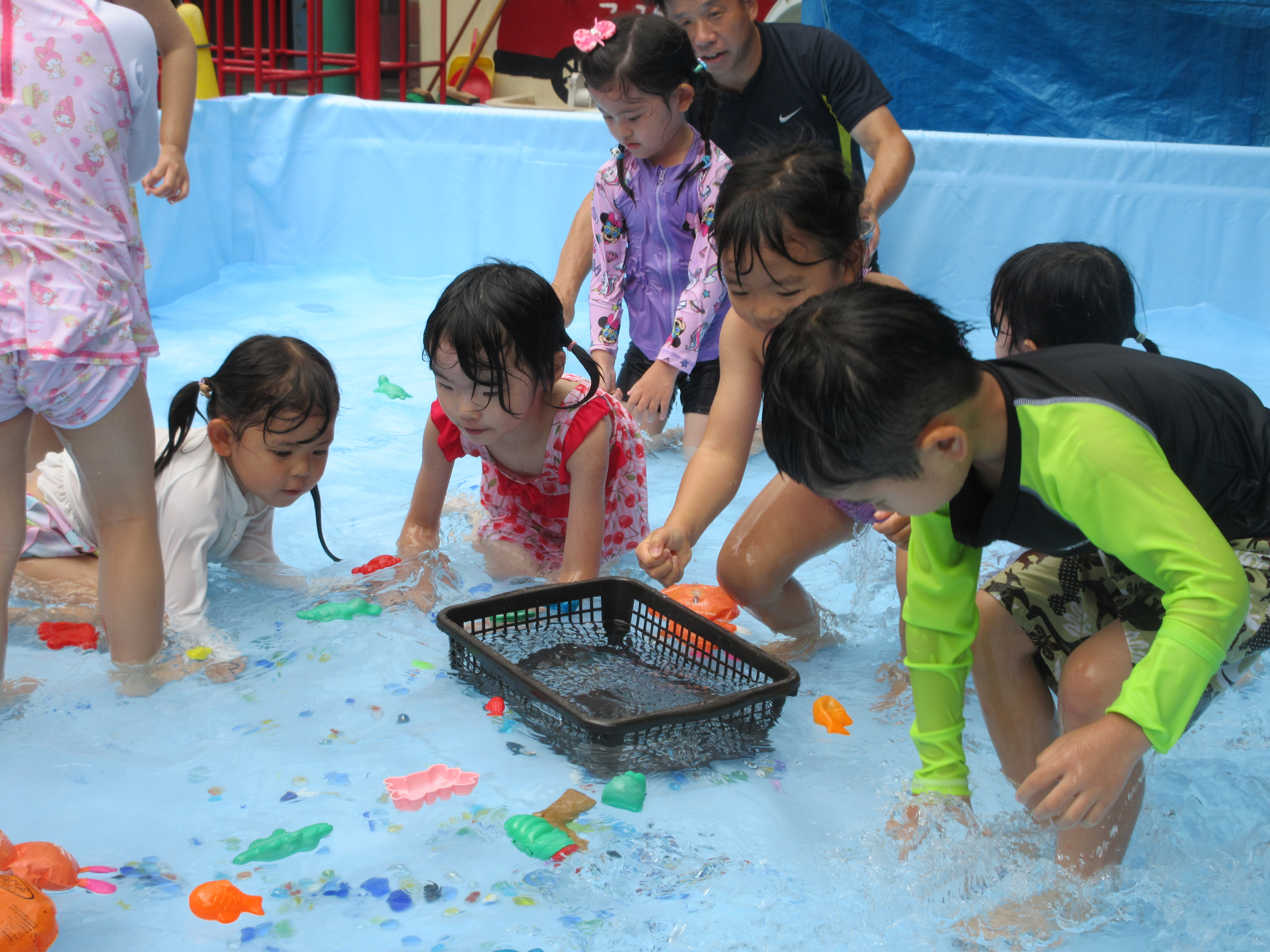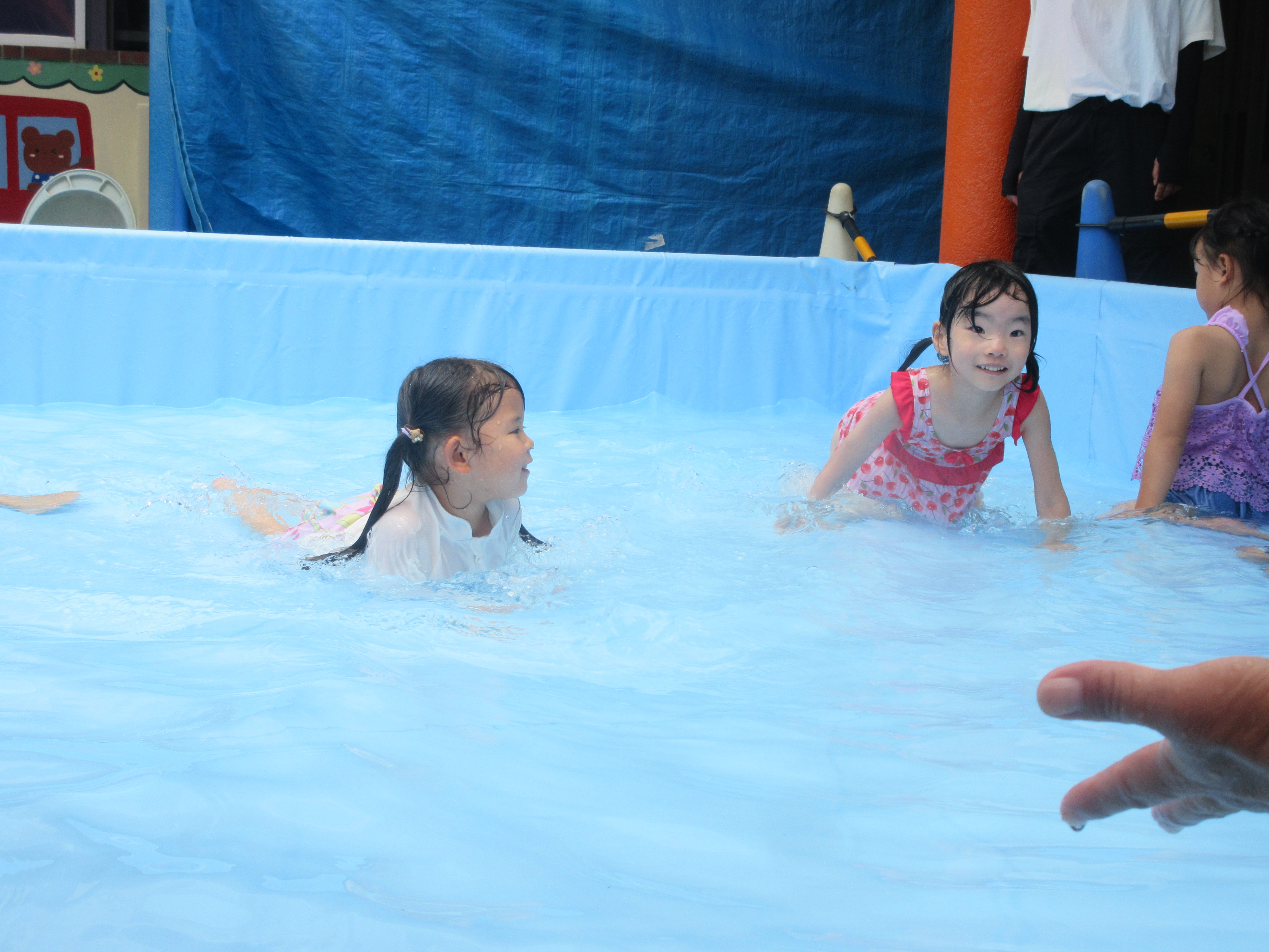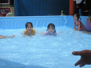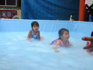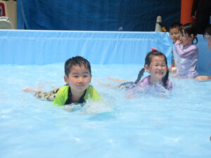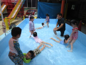 その後、ワニさん泳ぎで競争したり、お友だちとペアになって引っ張りあいっこをしたり、とっても楽しそうな子どもたちでした😊
