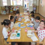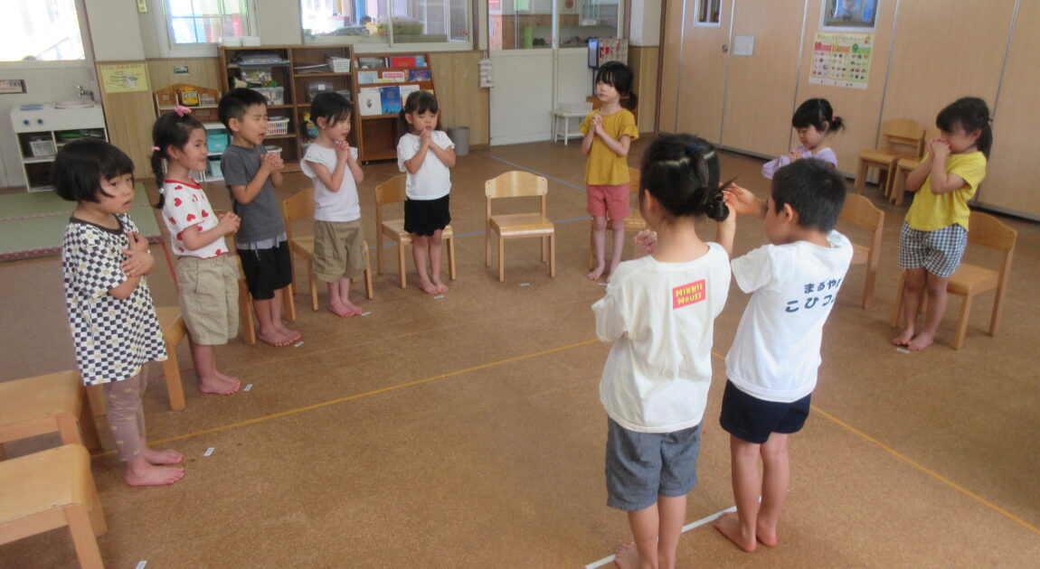 リトミックではお友だちと楽しそうにリズムをとり、お集まりでは上手にお祈りのポーズをしていて、かっこいいすみれ組さんでした✨