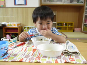初めての幼稚園でたくさん泣いていた子どもたちでしたが、今ではお友達の名前を呼び合っていたり、笑い声をあげて遊んでいたりとのびのびとした姿が見られて嬉しく思います。