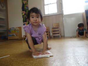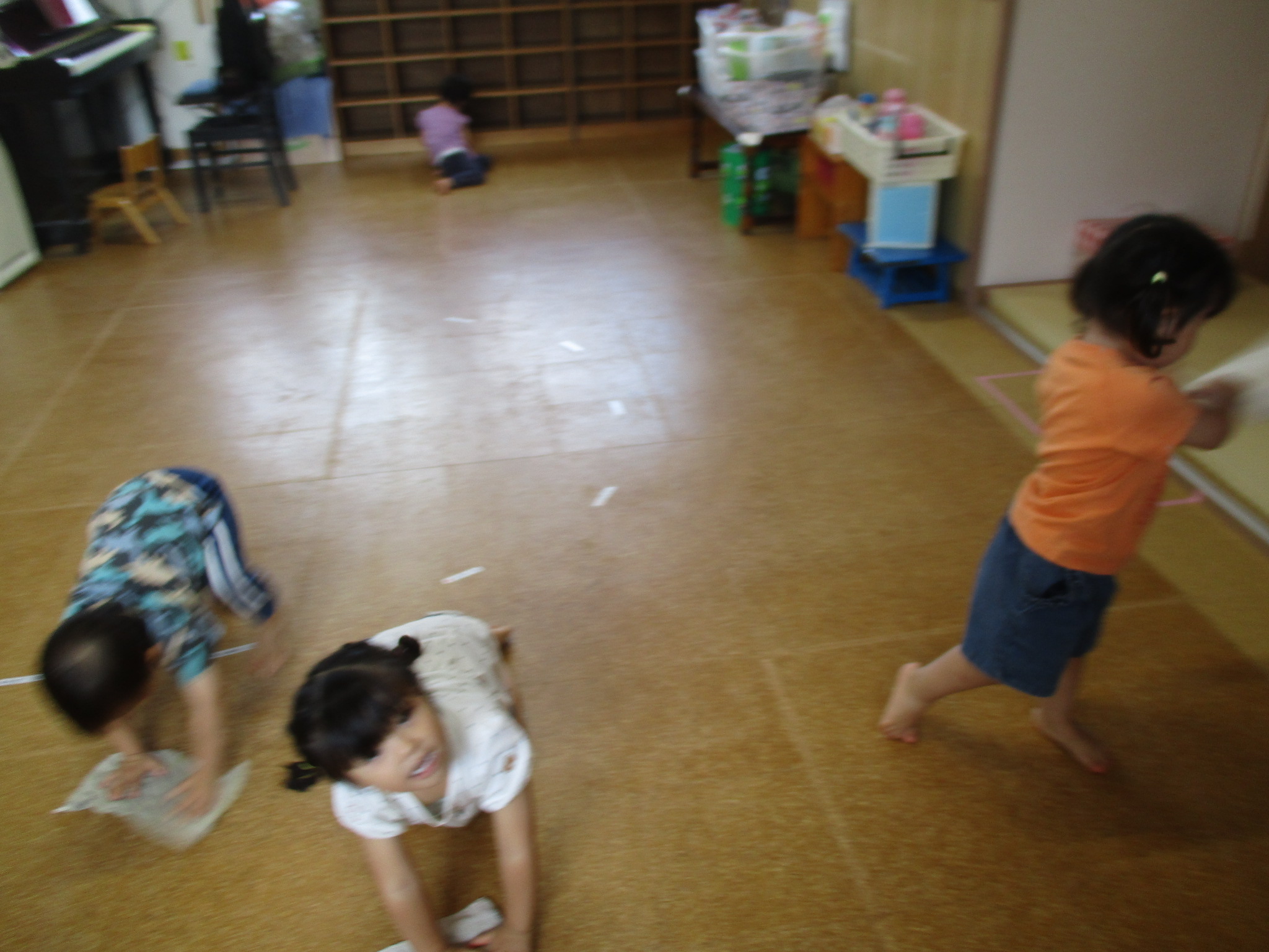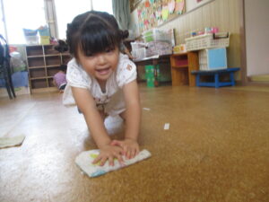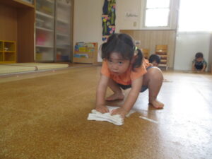 今日は1学期みんなで過ごしたひよこどんぐり組のお部屋をお掃除しました🧹