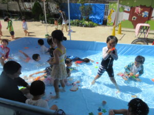 今日はプール遊びをしました!!