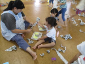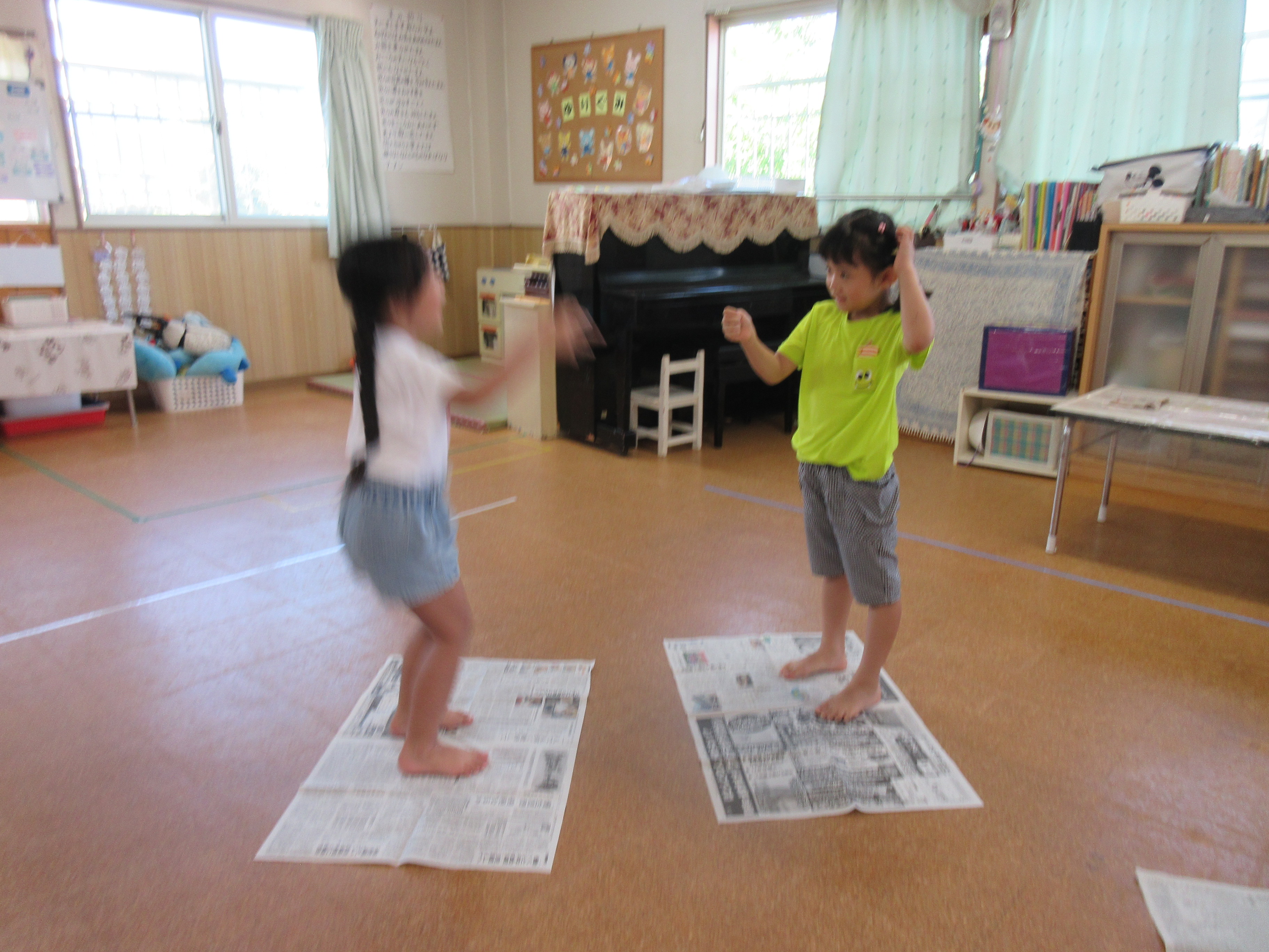 今日は1階と2階、合同でお集まりと新聞遊びをしました!