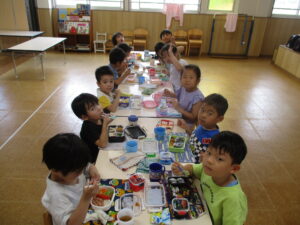 明日は夏期保育最後のプールあそびをする予定です!