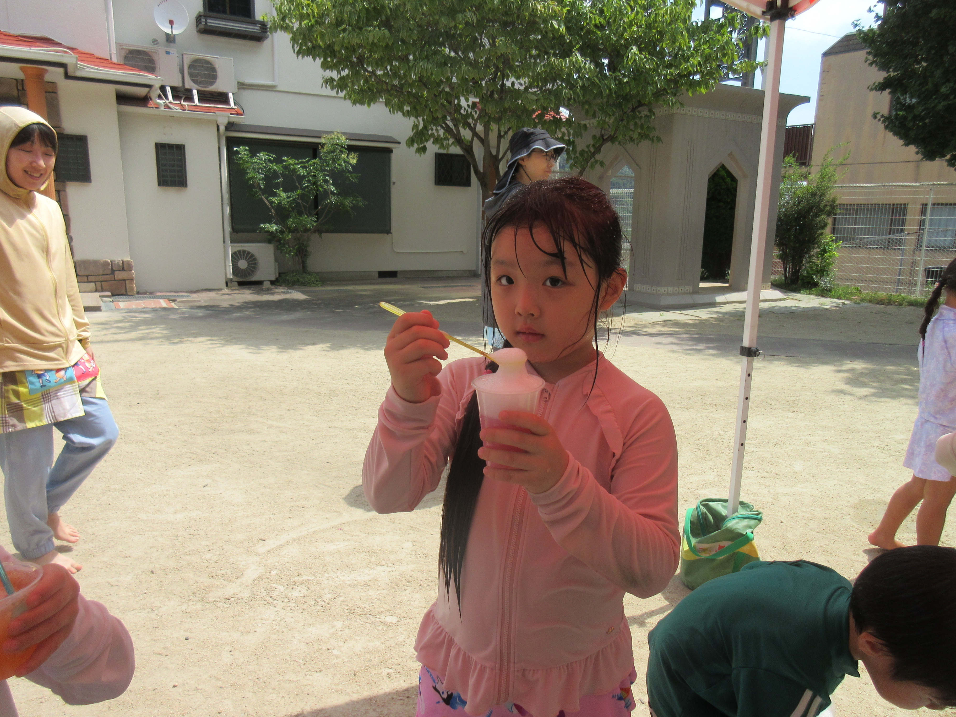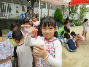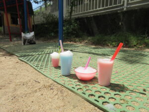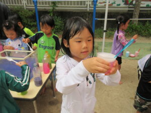 好きな色やいろんな色を混ぜたり、上に泡を乗せたり一人ひとりオリジナルのジュースが完成しました(^^♪