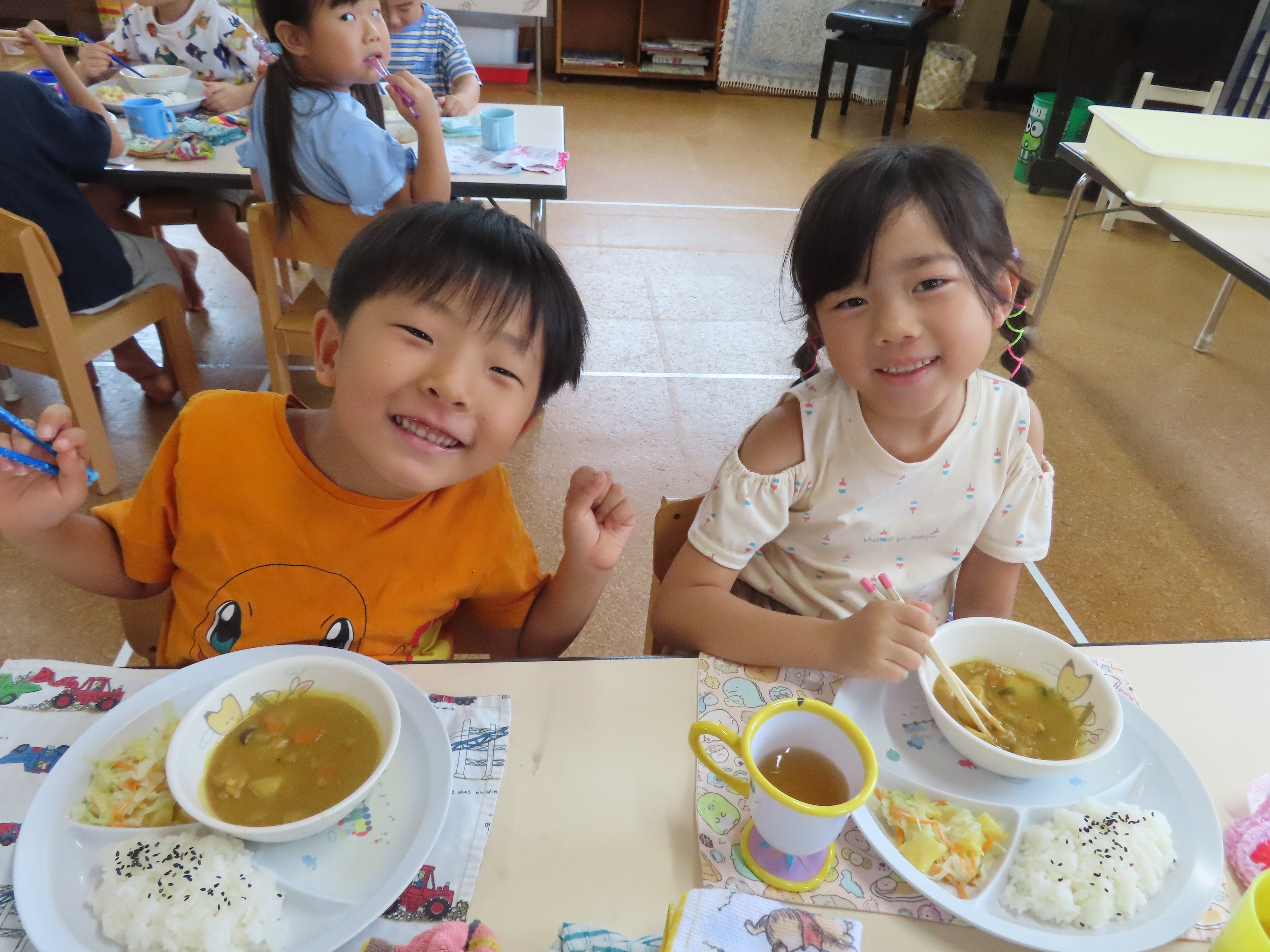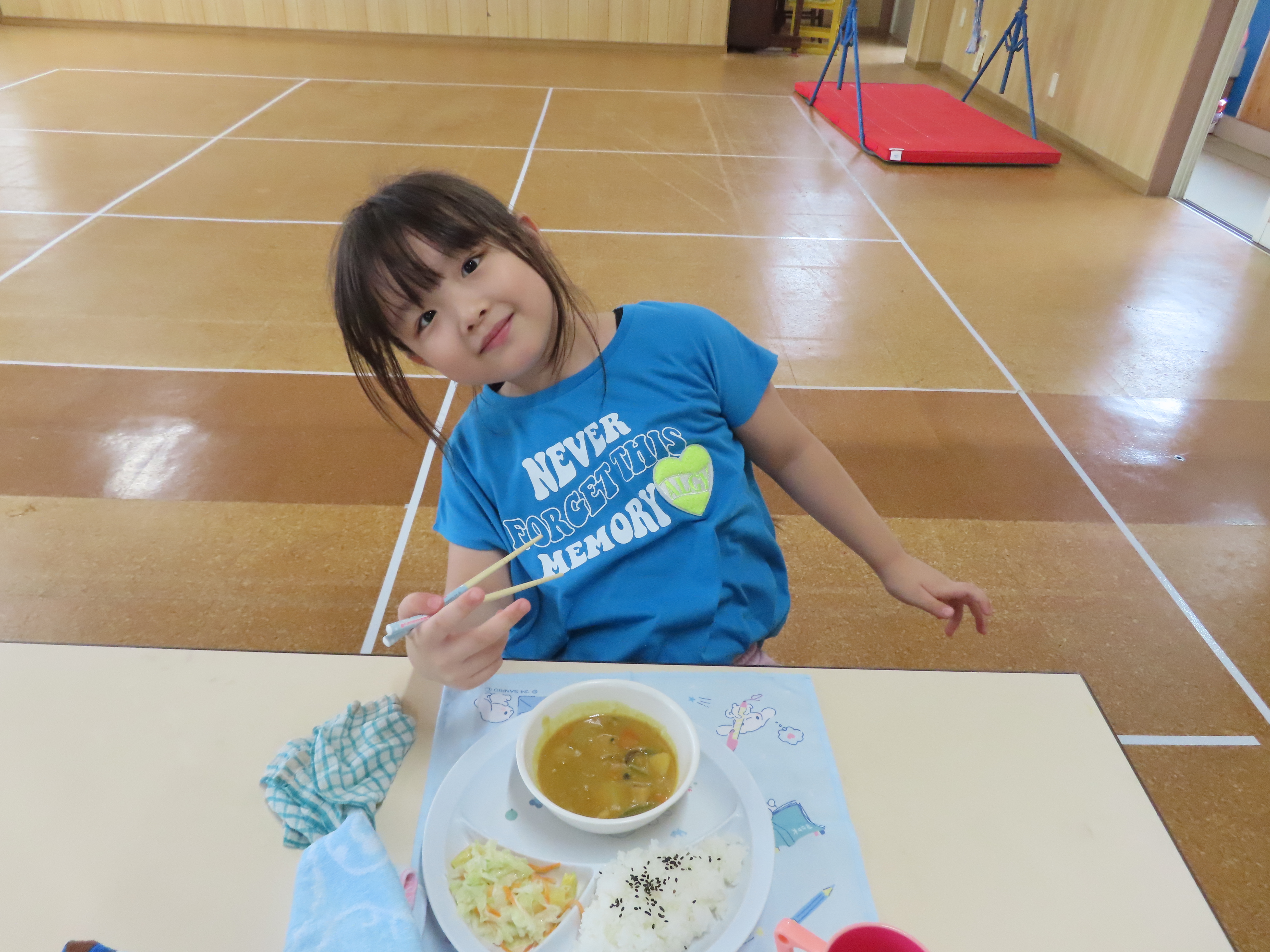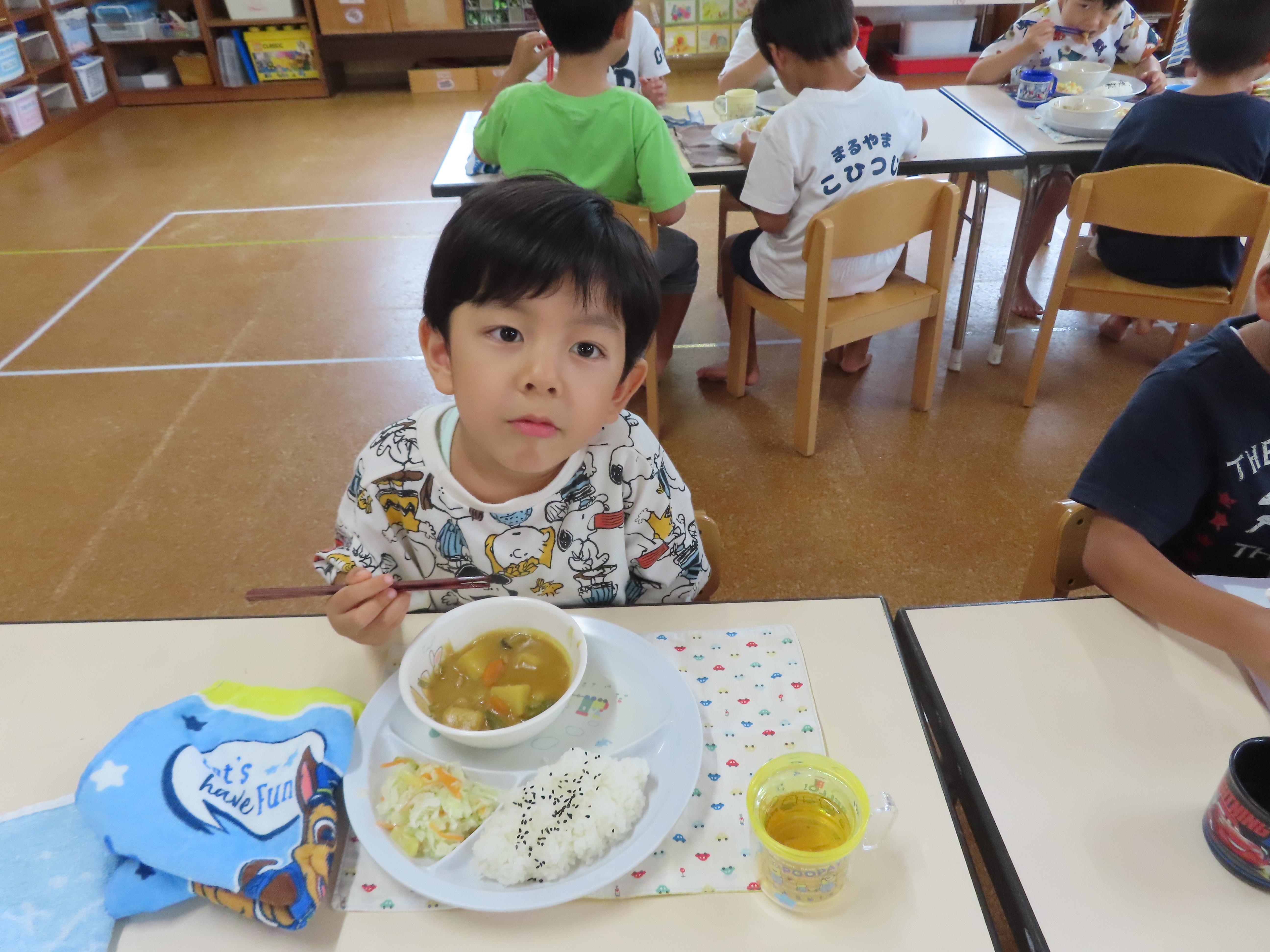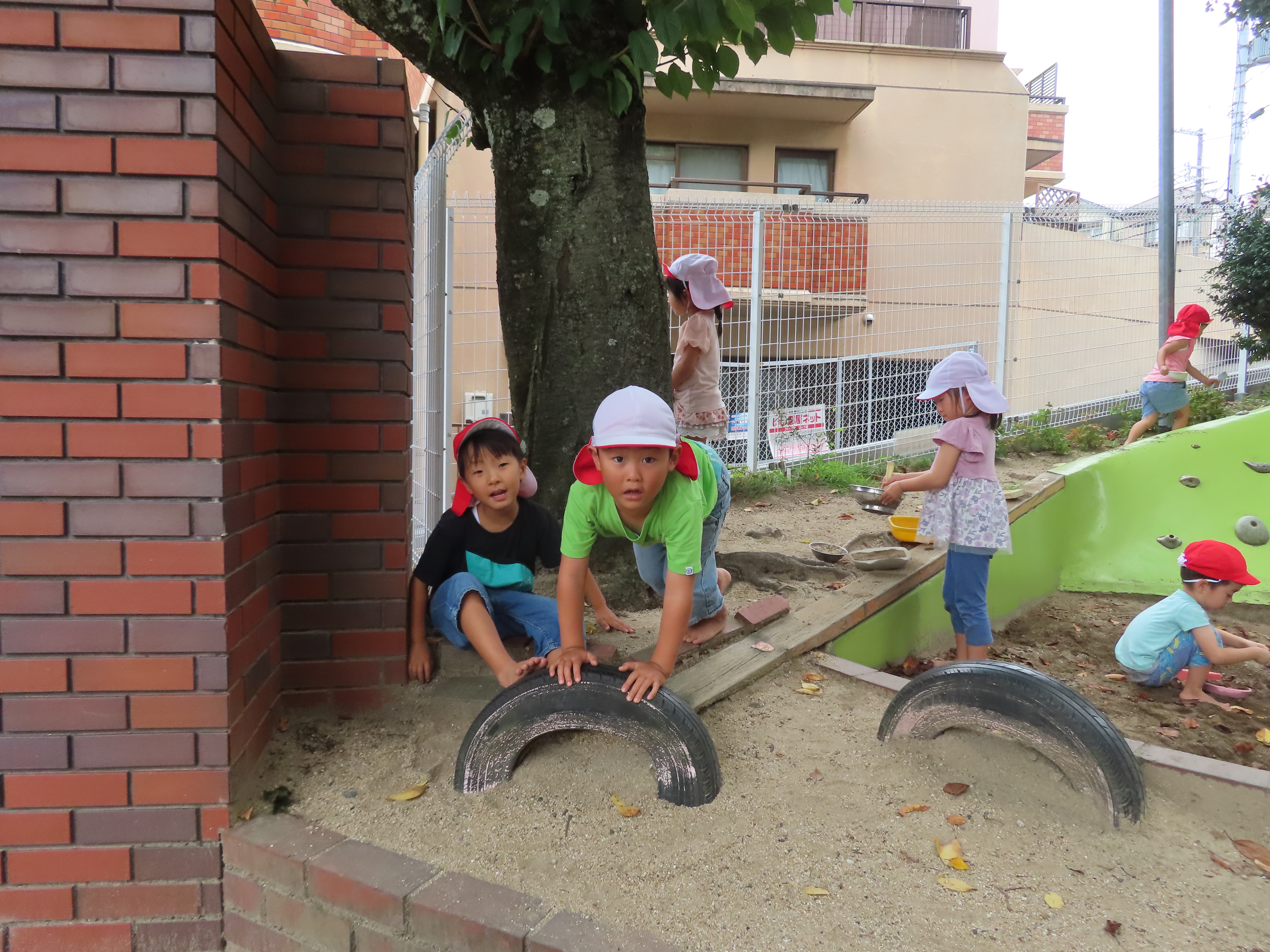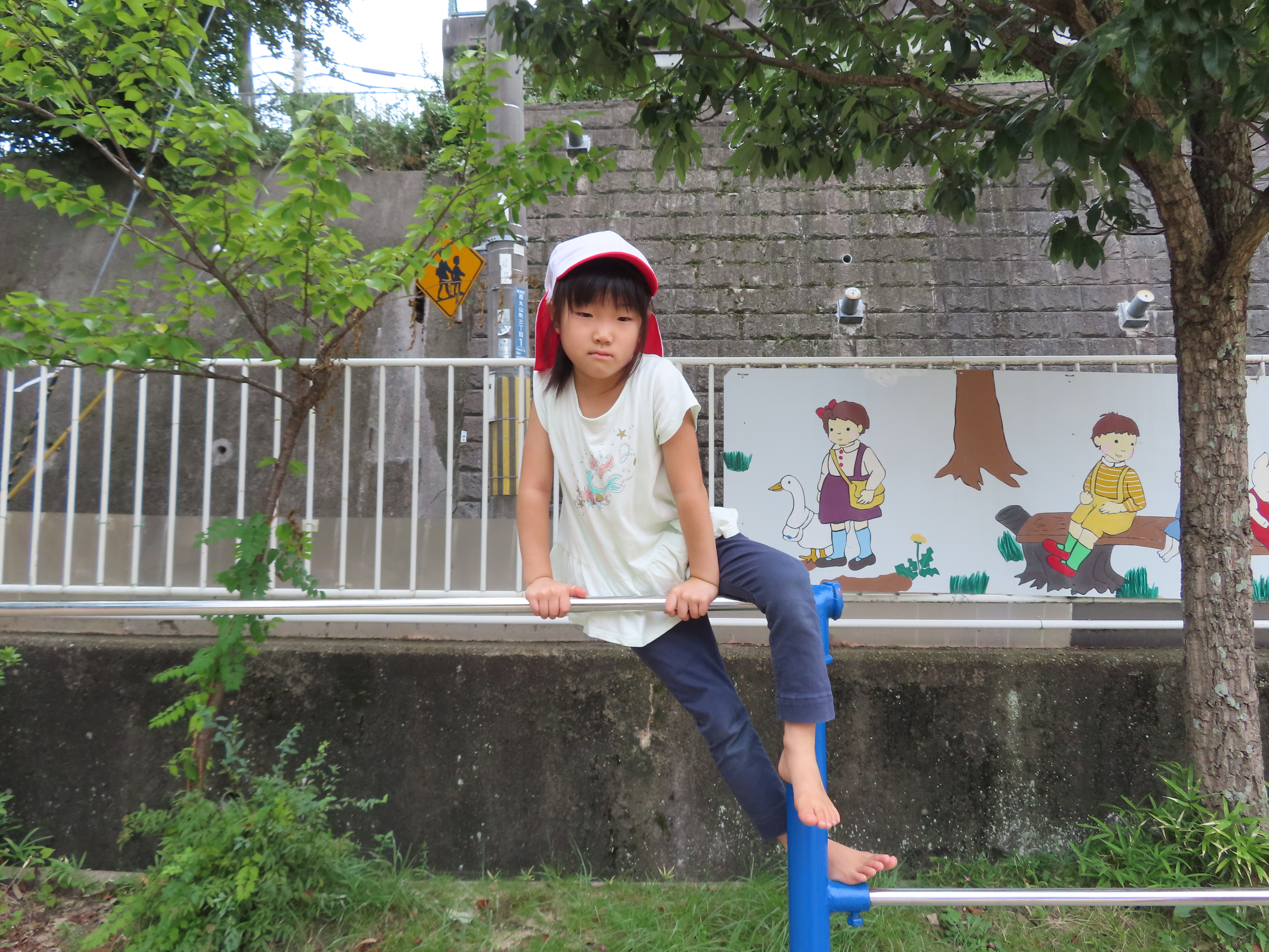 ご飯のあとは、今日は、たくさんお外で遊びました。ずっと暑くてお外あそびの時間も少し短かったので、今日は、たくさん遊べて大満足のようでした。