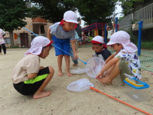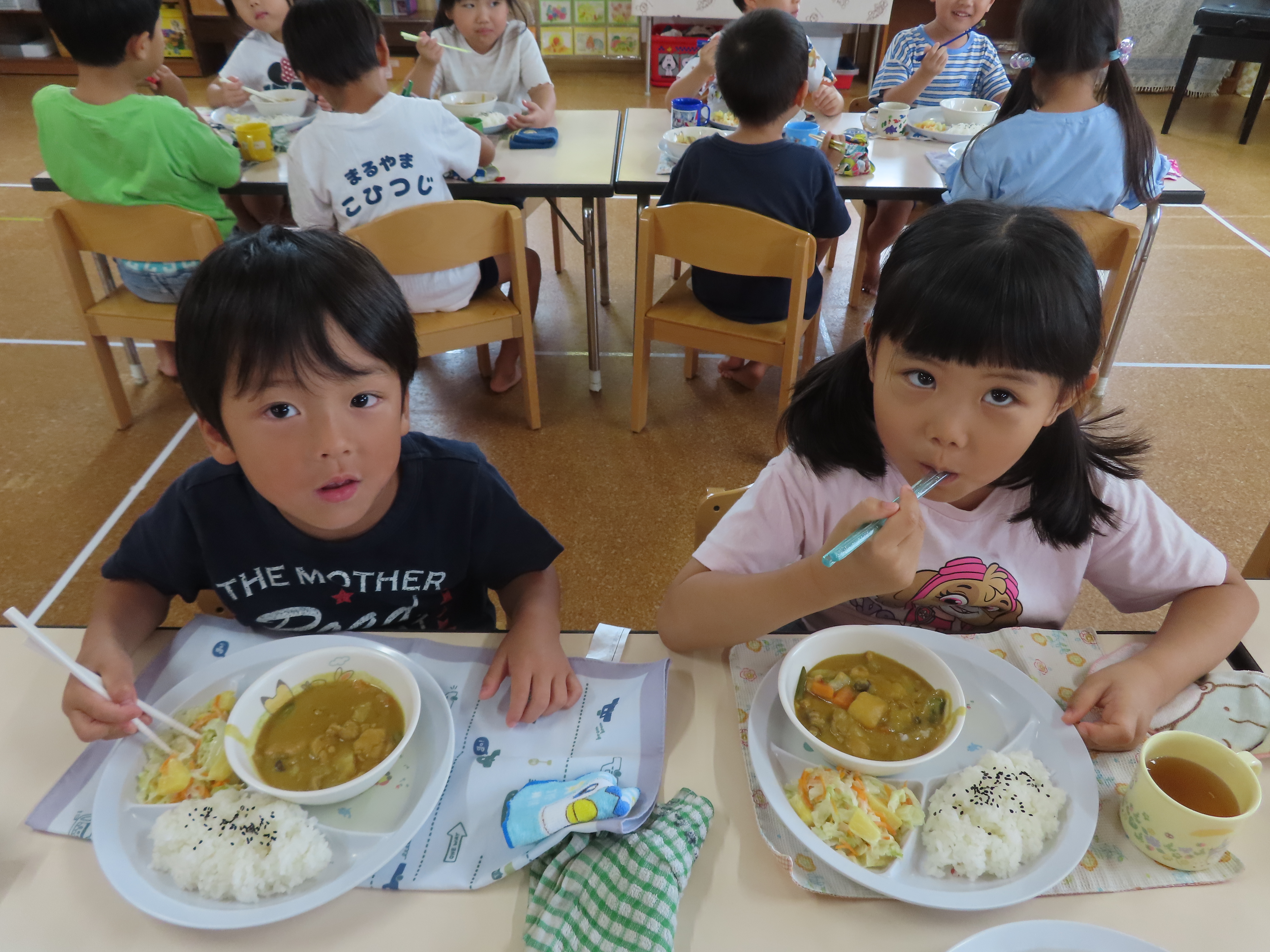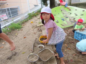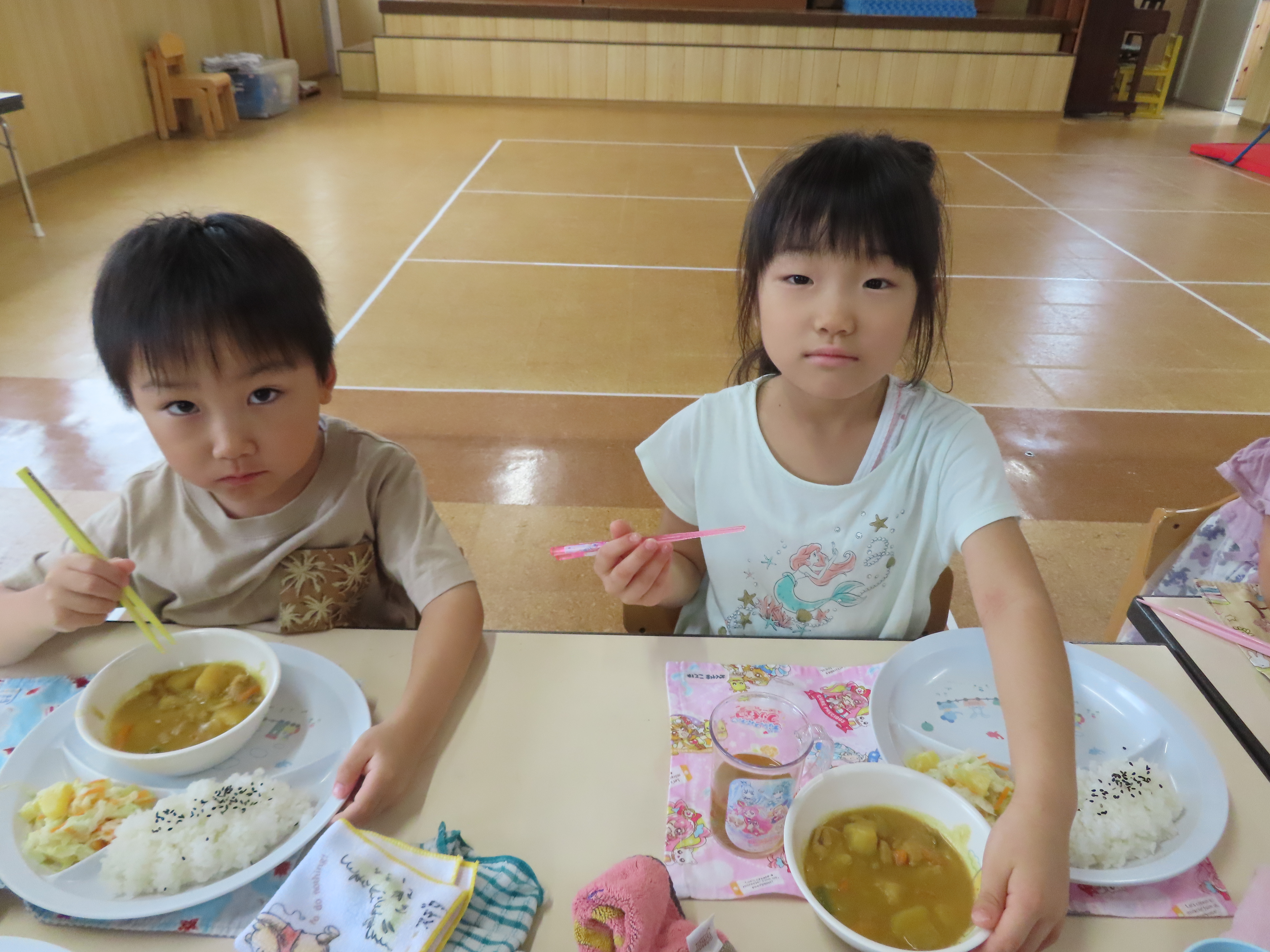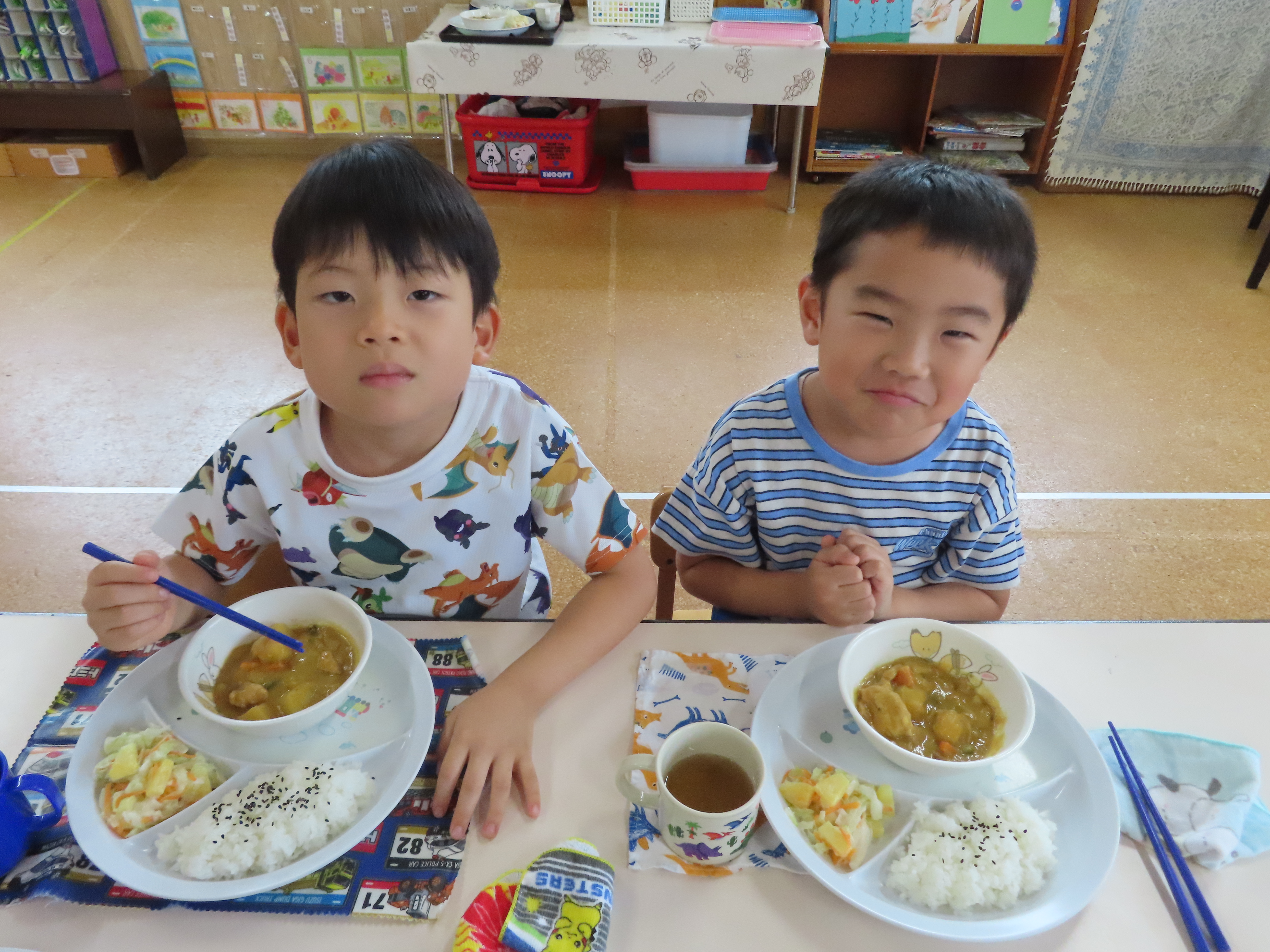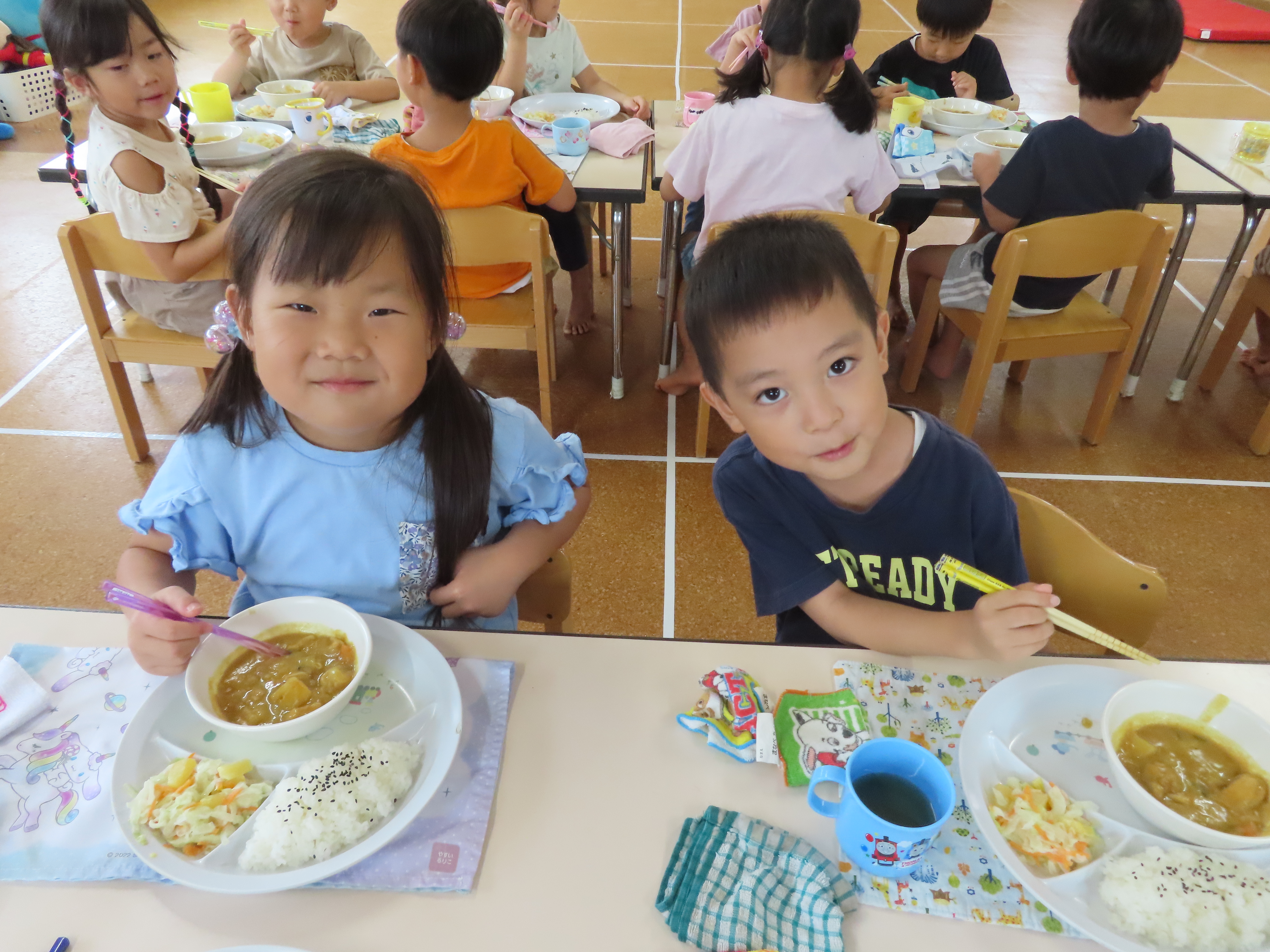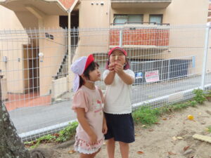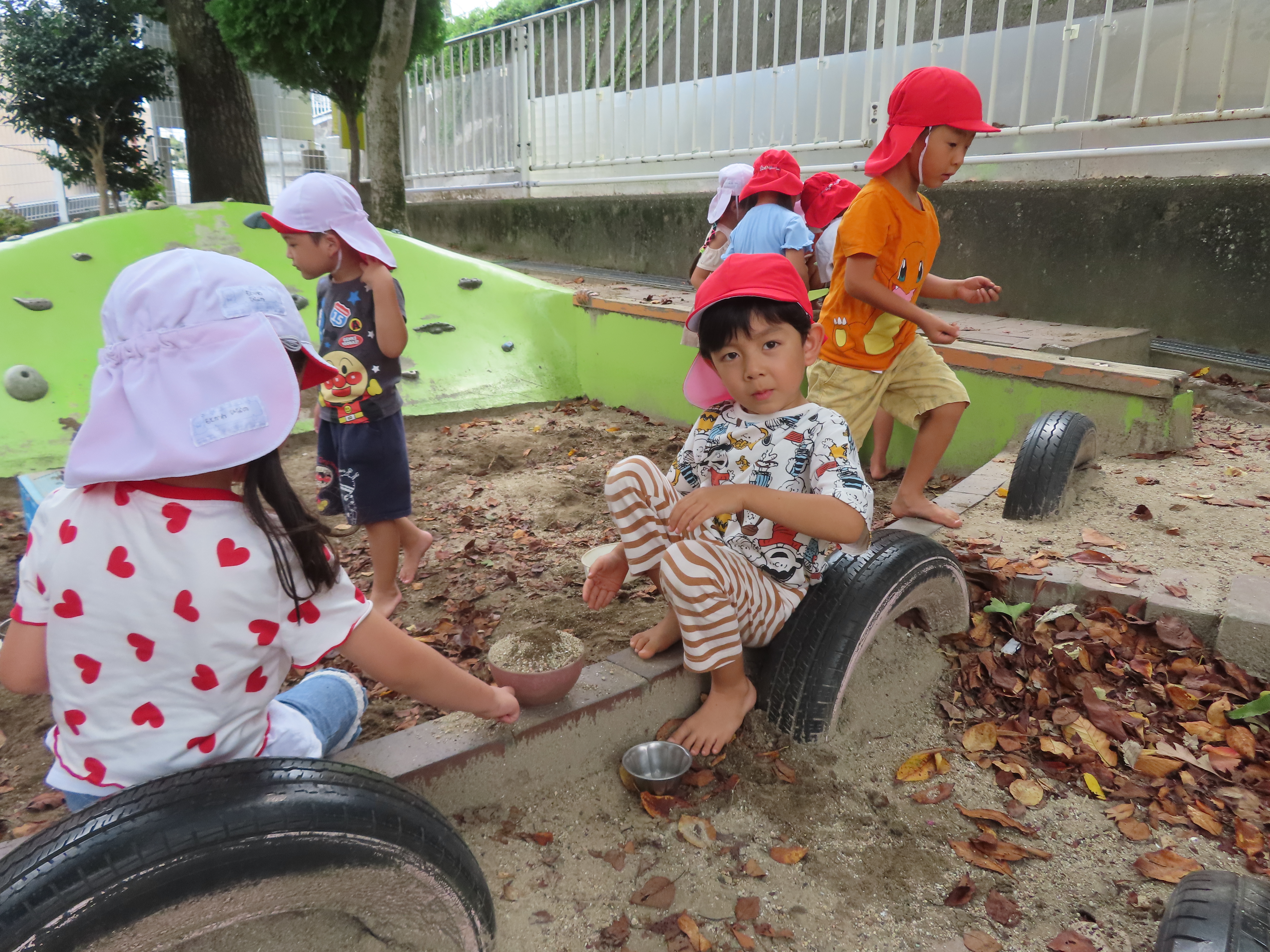 ご飯のあとは、今日は、たくさんお外で遊びました。ずっと暑くてお外あそびの時間も少し短かったので、今日は、たくさん遊べて大満足のようでした。