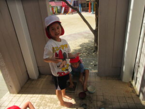 戸外遊びでは縄跳びをしたり、おままごとをしたり、サッカーをしたり、好きなことに夢中のすみれさん!