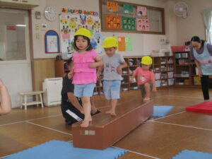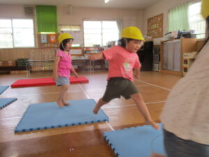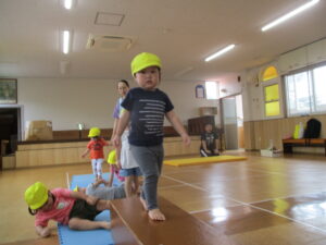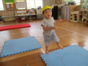 マットからマットにジャンプしてみたり一人で段差に挑戦してみたり・・・