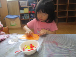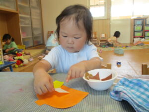 どんぐりの帽子はカラフルにして子どたちの個性が見られました😊
