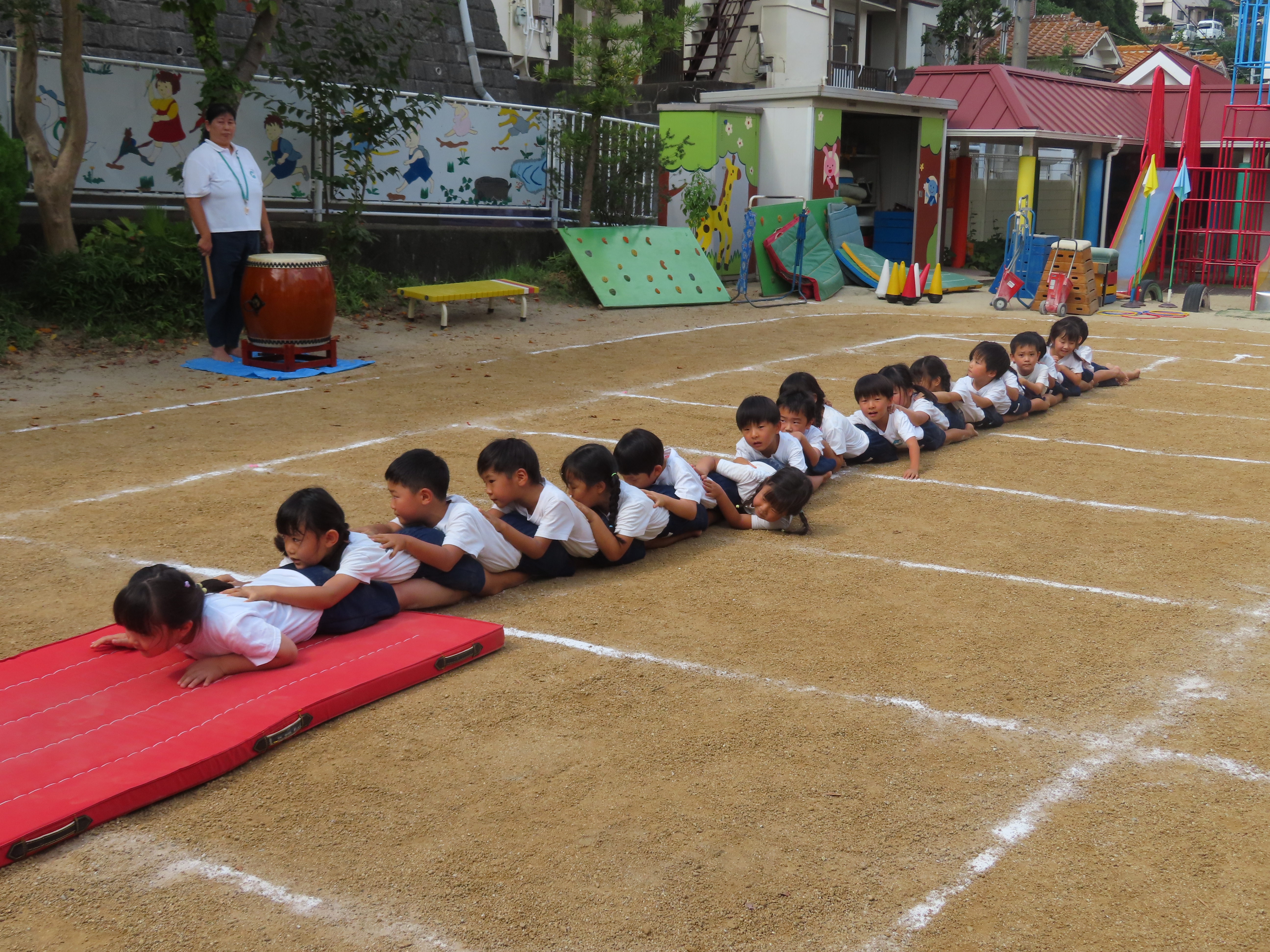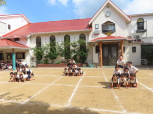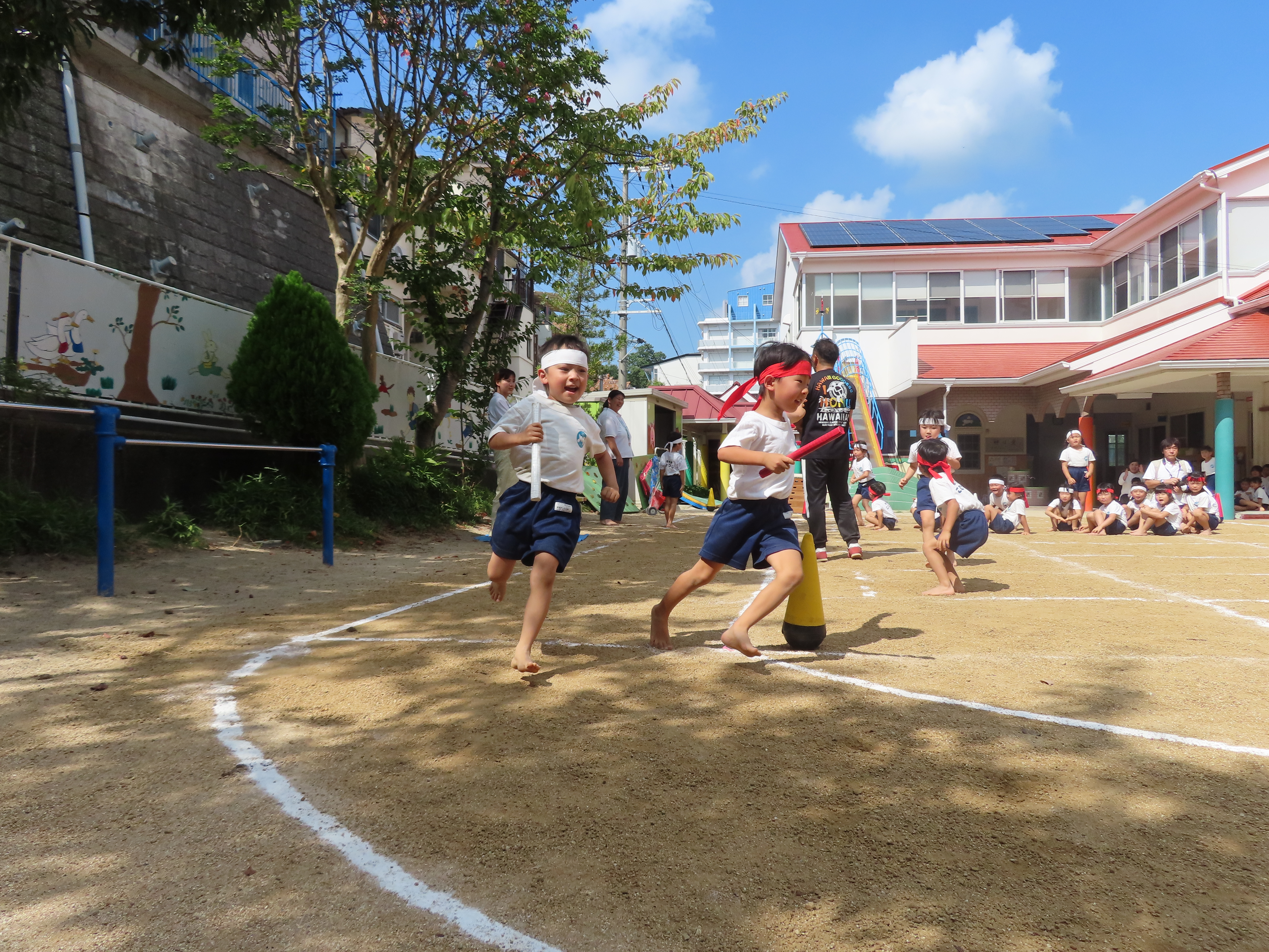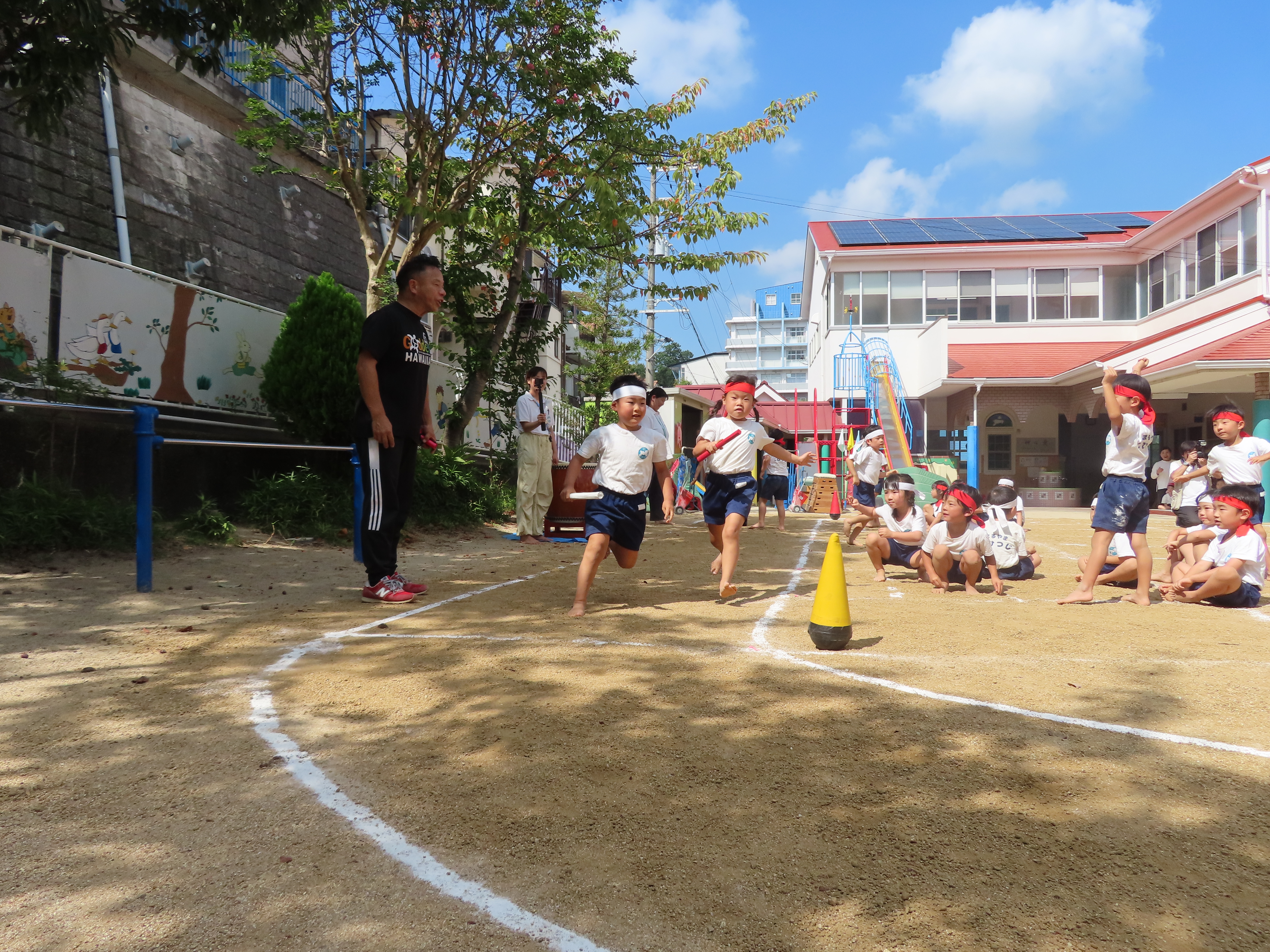 リレーでは、どうやったら、勝てるかを大西先生に教えてもらい、赤チームも白チームも白熱して、お友だちを応援する声も大きくなっていました。