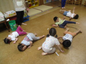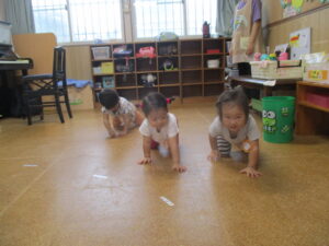 今日は恵の雨が降ておりお外では過ごせませんでしたがお部屋でたくさん体を動かしました。
