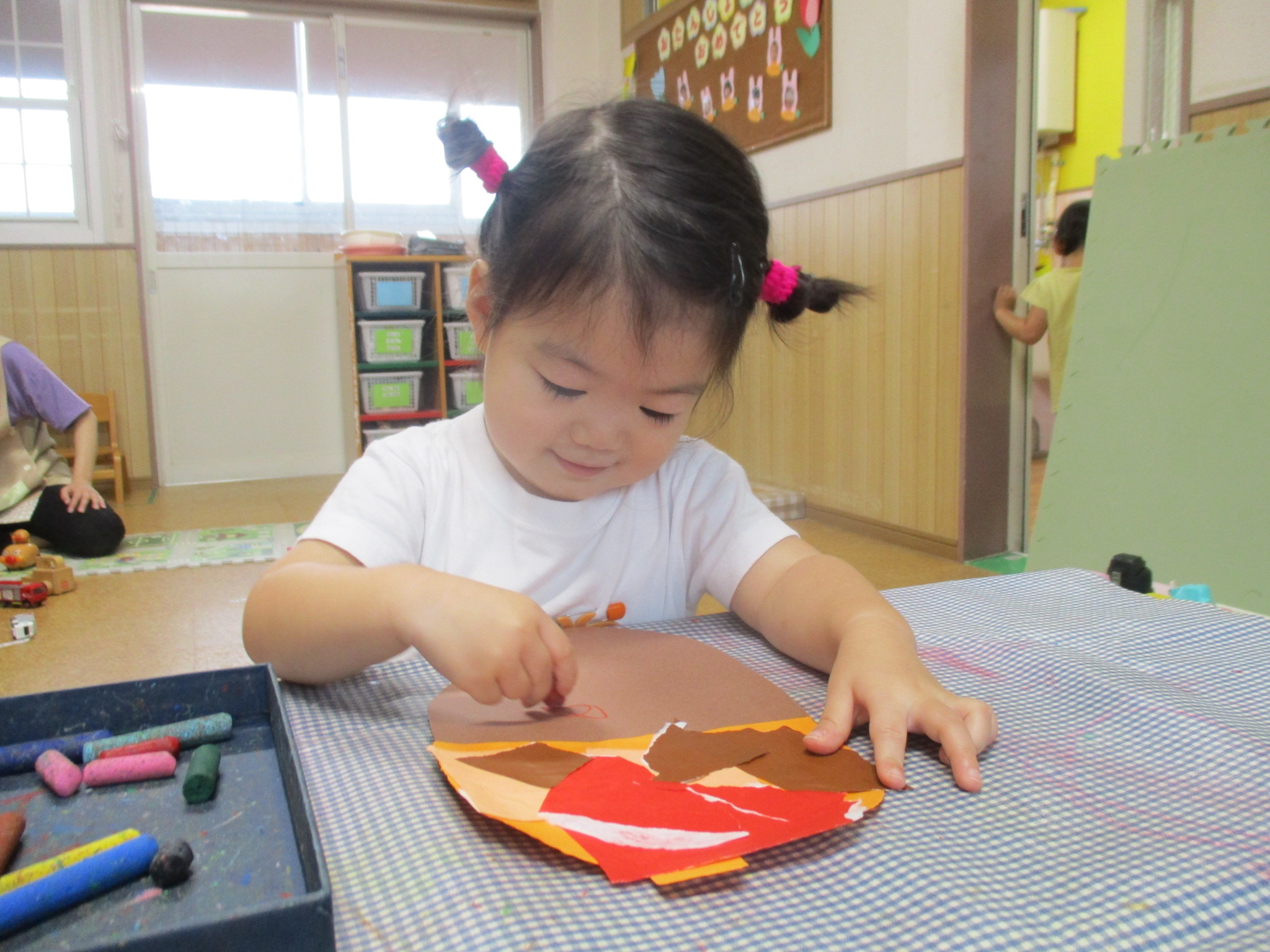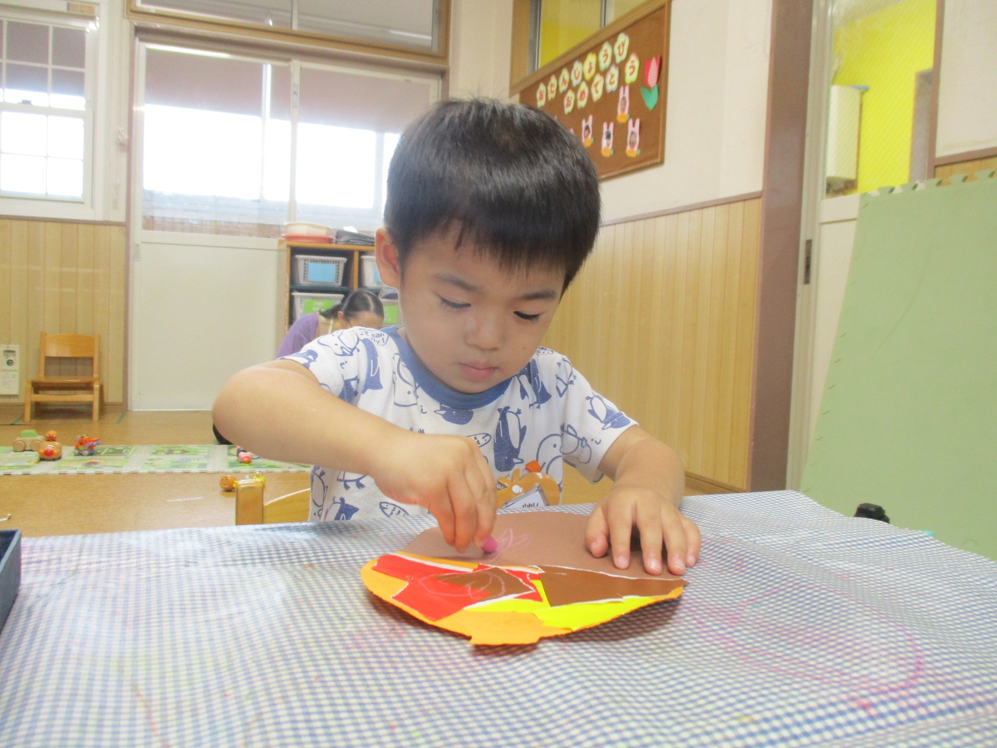 「お目目・・・お口!」「お化粧!」などと声にでして描いている子どもの姿があり、素敵などんぐりができました!