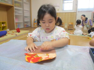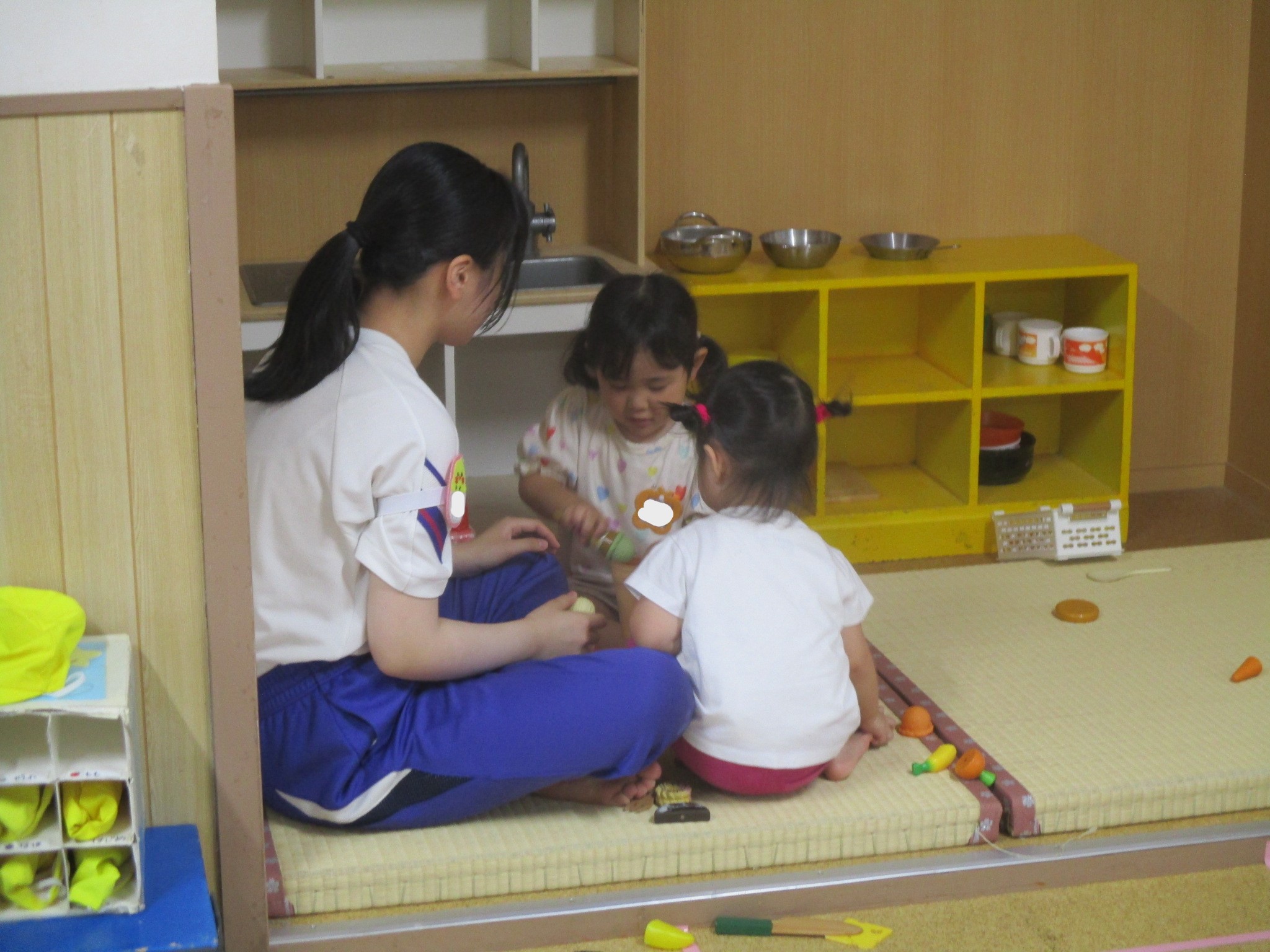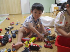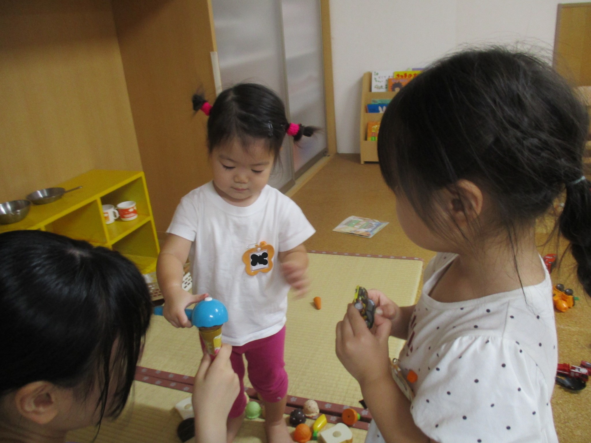 お部屋遊びでは「貸して」「いいよ」の練習をしています。