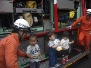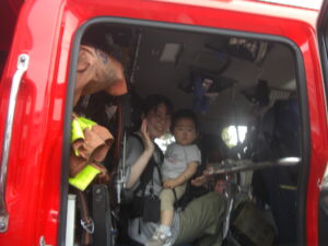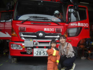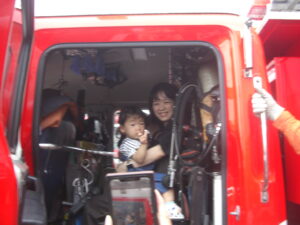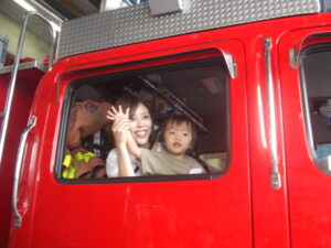 写真を撮るときにだっこしてくださったり、優しく声を掛けて下さったり、消防士の皆さんとっても親切に接して下さり、みんなで楽しい時間を過ごすことができました(^^)