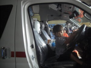 消防車だけでなく、救急車の中にも入らせてもらったよ(^^♪