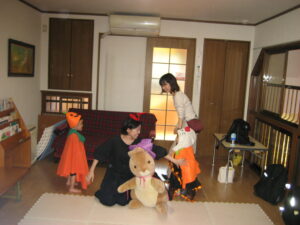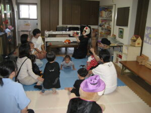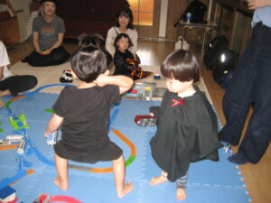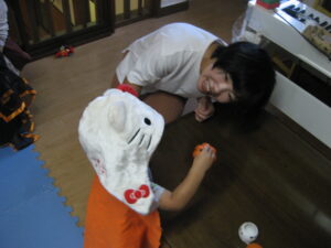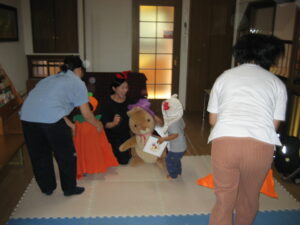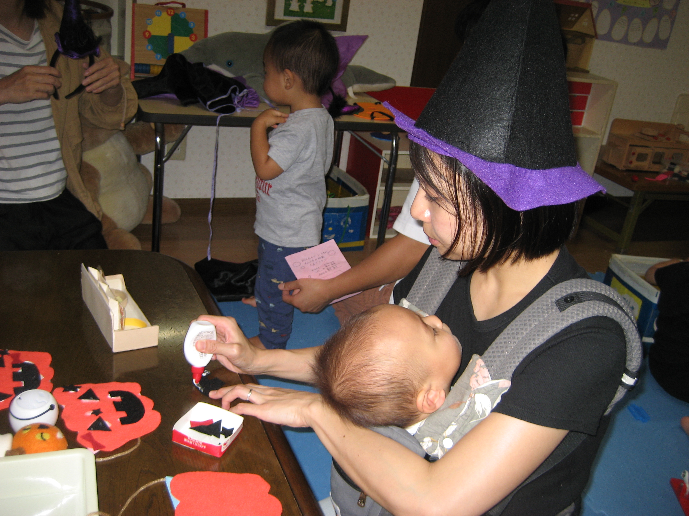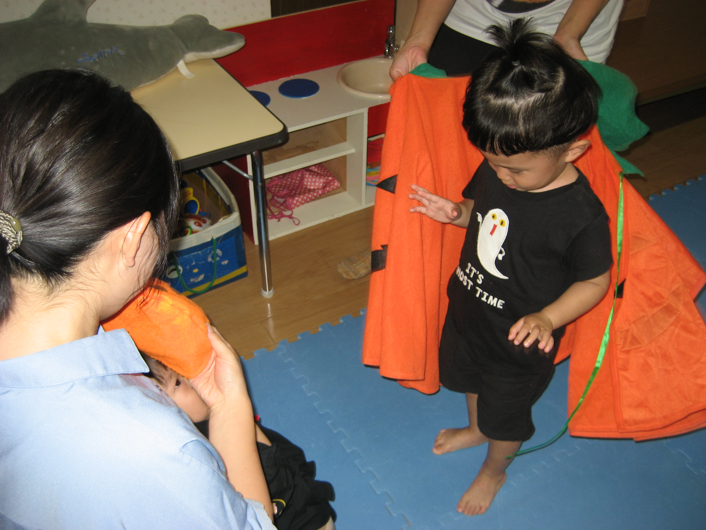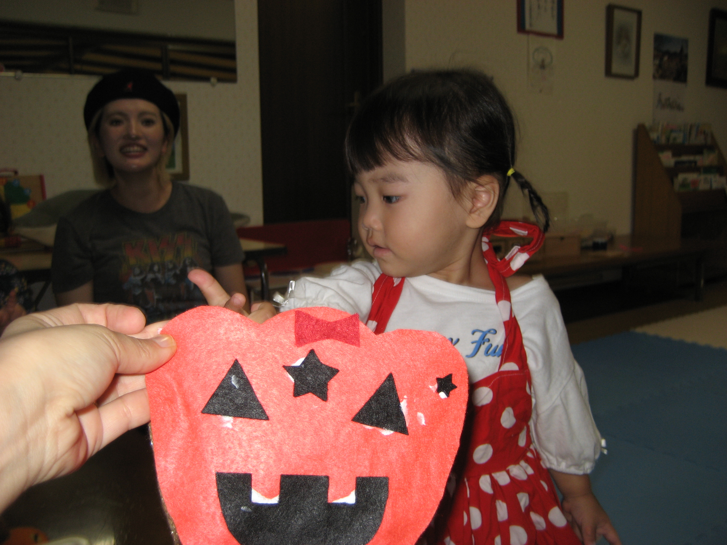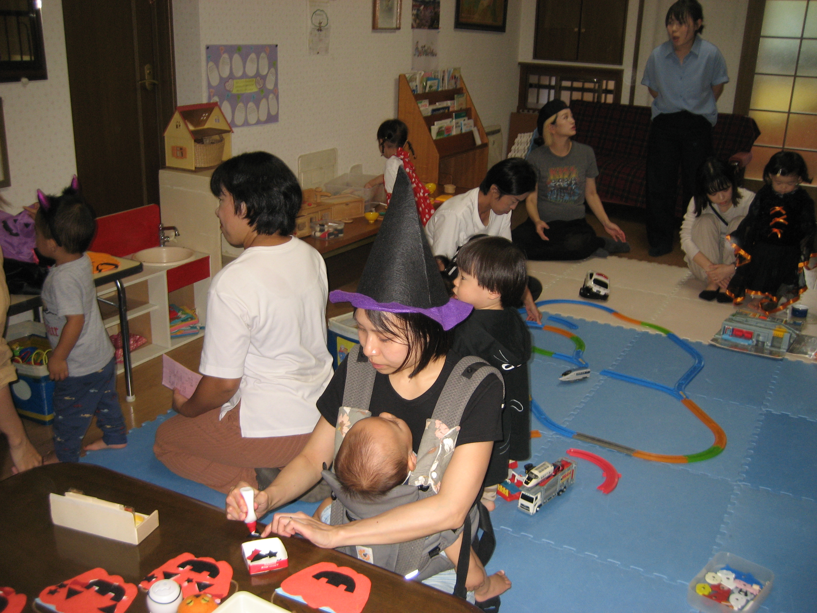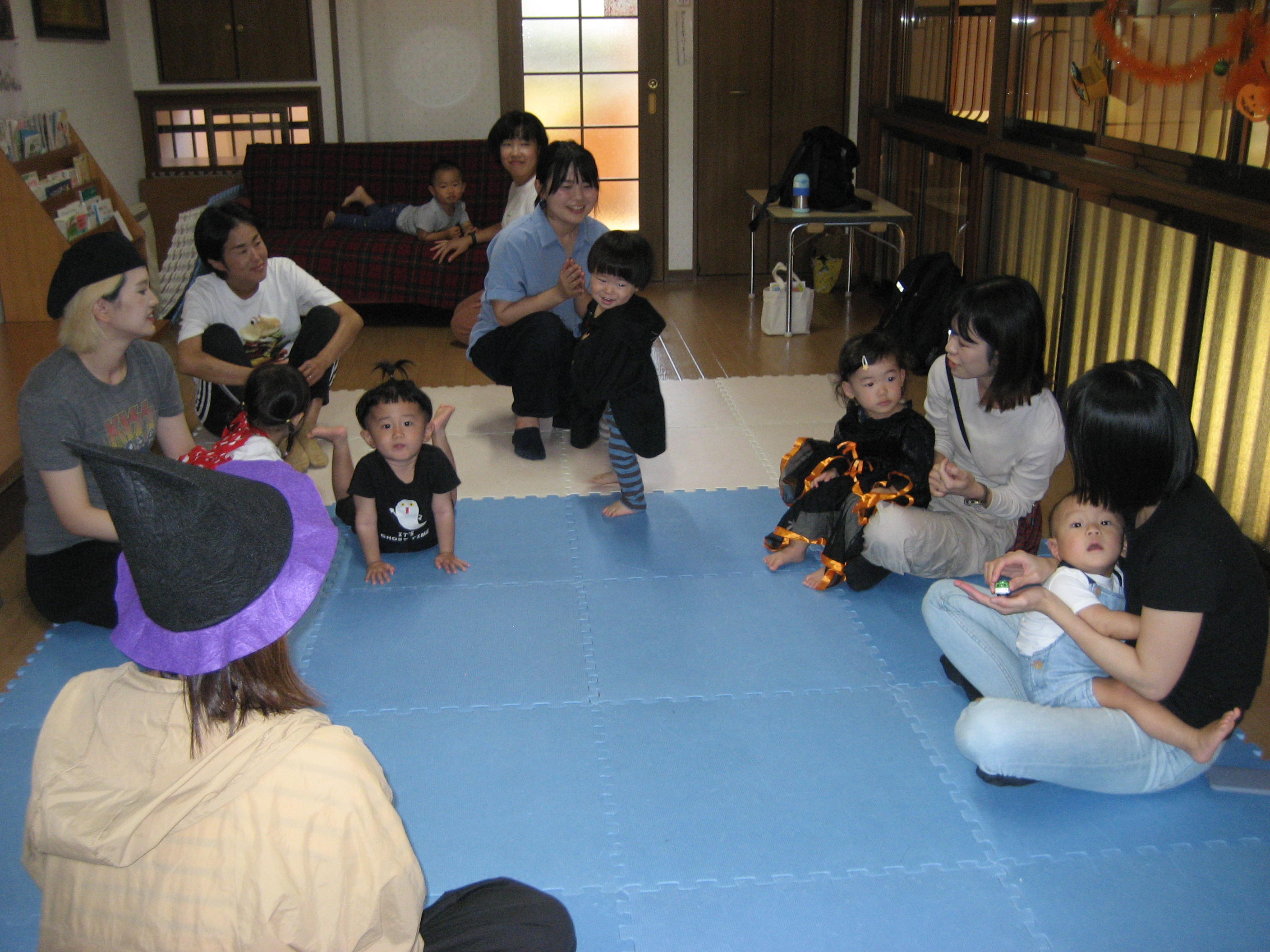 続いて☆☆ハロウィンパーティー運動会ごっこ♡パンプキンメダルバックをつくりました♡♡お目め&お口&星&リボンを、ぴったんこ☆☆とっても可愛いパンプキンメダルバック☆☆の完成♡ハロウィン運動会は、ハロウィンパーティー♬ダンスを、とっても上手に踊りました♬マントを繋いでよーいドン☆☆も、みんなとっても可愛いくて、、、♡♡笑顔いっぱいのハロウィン運動会ごっこができました♡♡頑張ったママ&子どもたちには、ハロウィンおやつのプレゼント♡ハロウィン金メダルバックに入れて♡嬉しそうな笑顔に、先生たちは、いっぱい♡癒されました~♡♡いつもありがとう♡♡